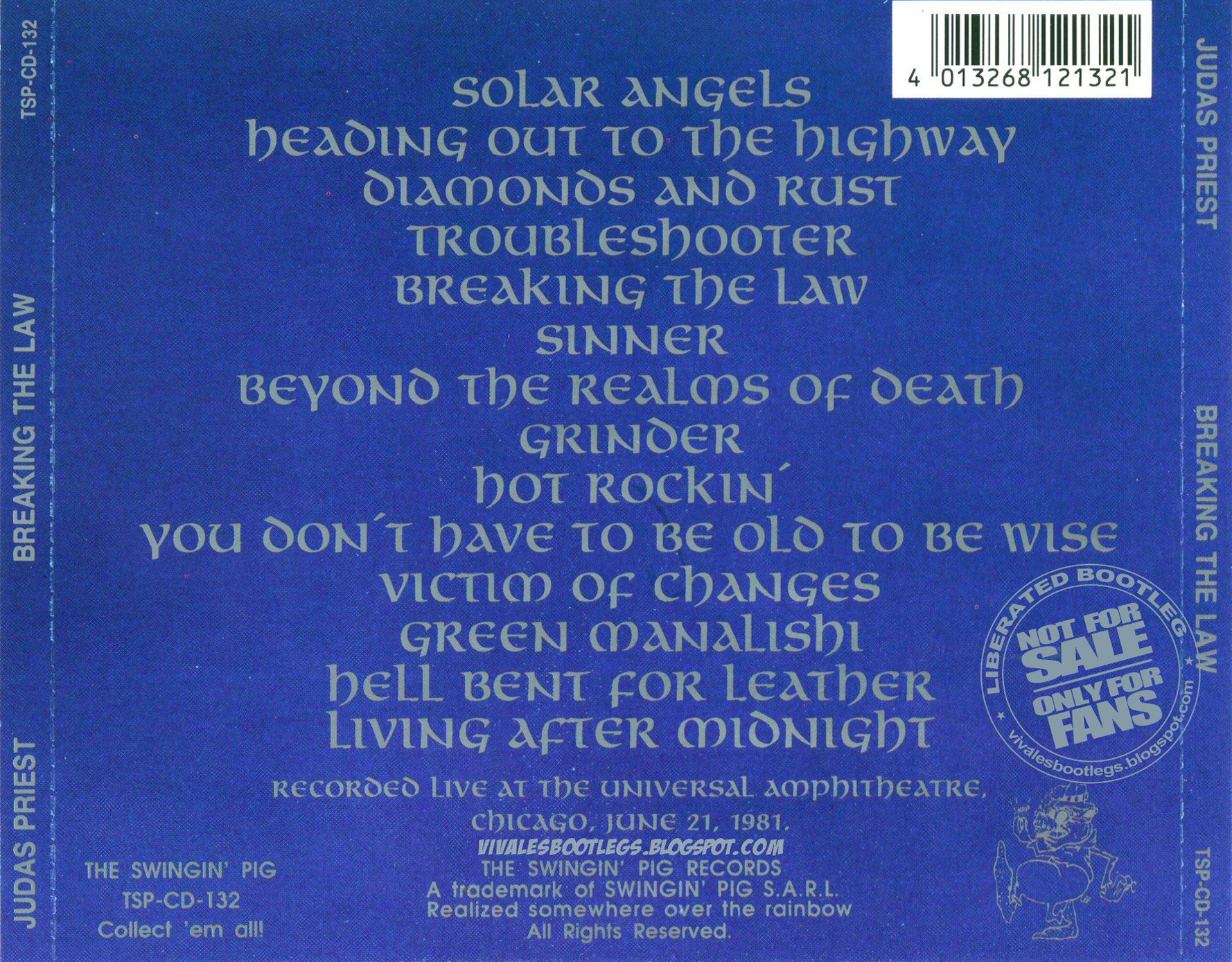 1. Solar Angels 2. Heading Out to the Highway 3. Diamonds and Rust 4. Troubleshooter 5. Breaking the Law 6. Sinner 7. Beyond the Realms of Death 8. Grinder 9. Hot Rockin' 10. You Don't Have to Be Old to Be Wise 11. Victim of Changes 12. The Green Manalishi (With the Two-Pronged Crown) 13. Hell Bent for Leather 14. Living After Midnight