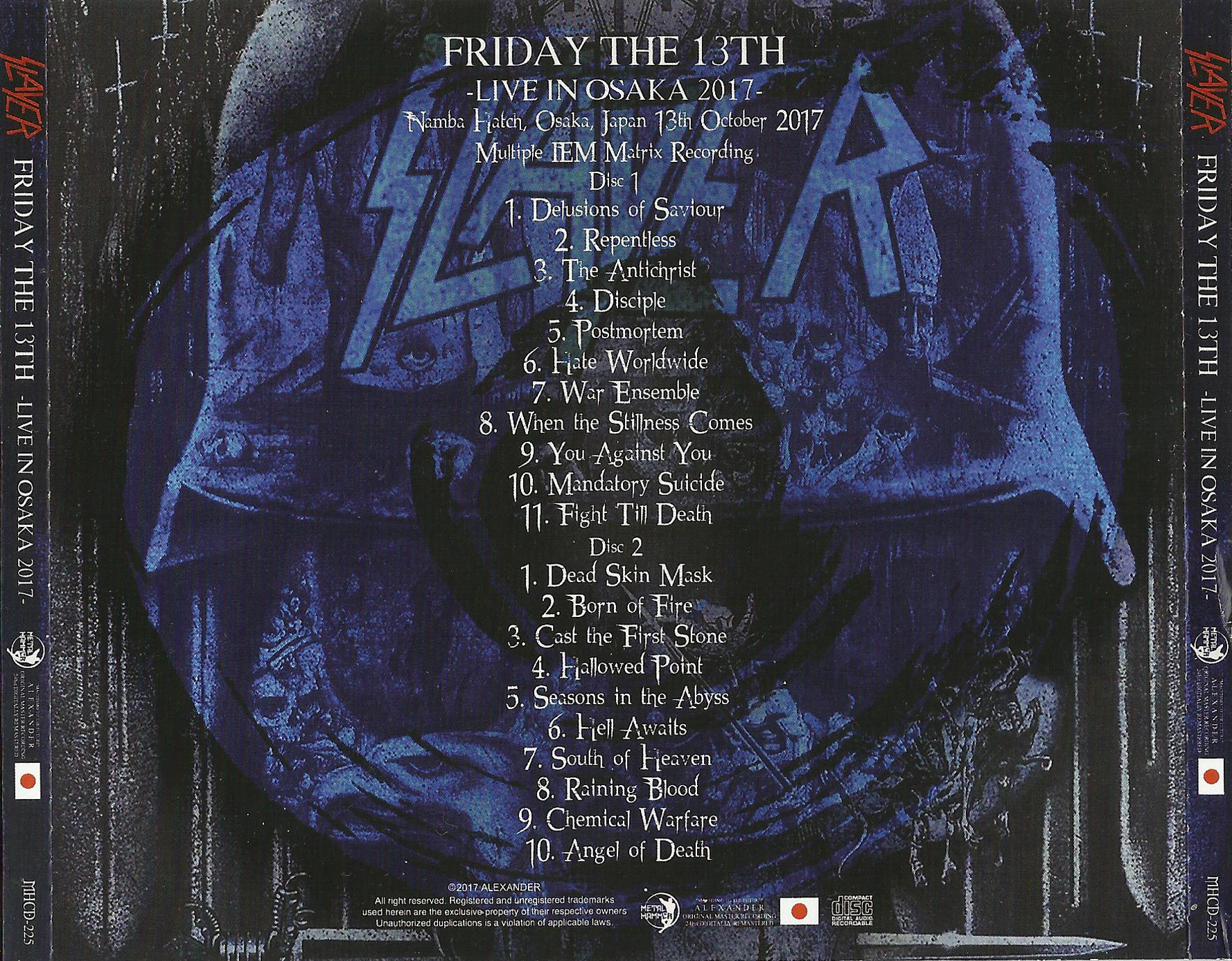 1. Dead Skin Mask 2. Born of Fire 3. Cast the First Stone 4. Hollowed Point 5. Seasons in the Abyss 6. Hell Awaits 7. South of Heaven 8. Raining Blood 9. Chemical Warfare 10. Angel of Death