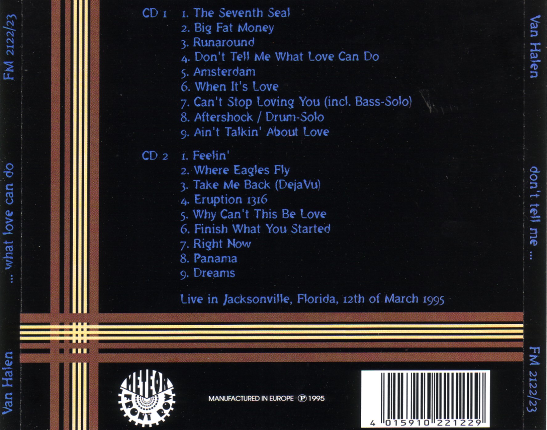 1. The Seventh Seal 2. Big fat Money 3. Runaround 4. Amsterdam 5. When It's Love 6. You Really Got Me 7. Bass Solo 8. Aftershock 9. Drum Solo 10. Ain't Talkin' 'Bout Love 11. Feeling 12. Where Eagles Fly 13. 316