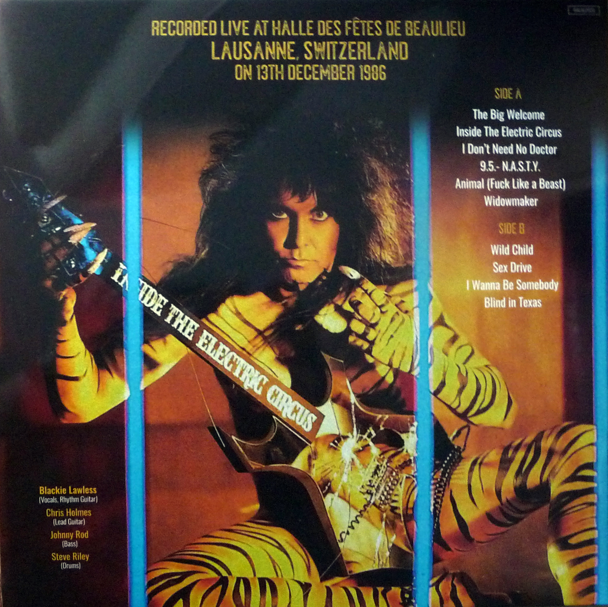 A1. The Big Welcome A2. Inside the Electric Circus A3. I Don't Need No Doctor A4. 9.5. - N.A.S.T.Y. A5. Animal (Fuck Like a Beast) A6. Widowmaker B1. Wild Child B2. Sex Drive B3. I Wanna Be Somebody B4. Blind in Texas