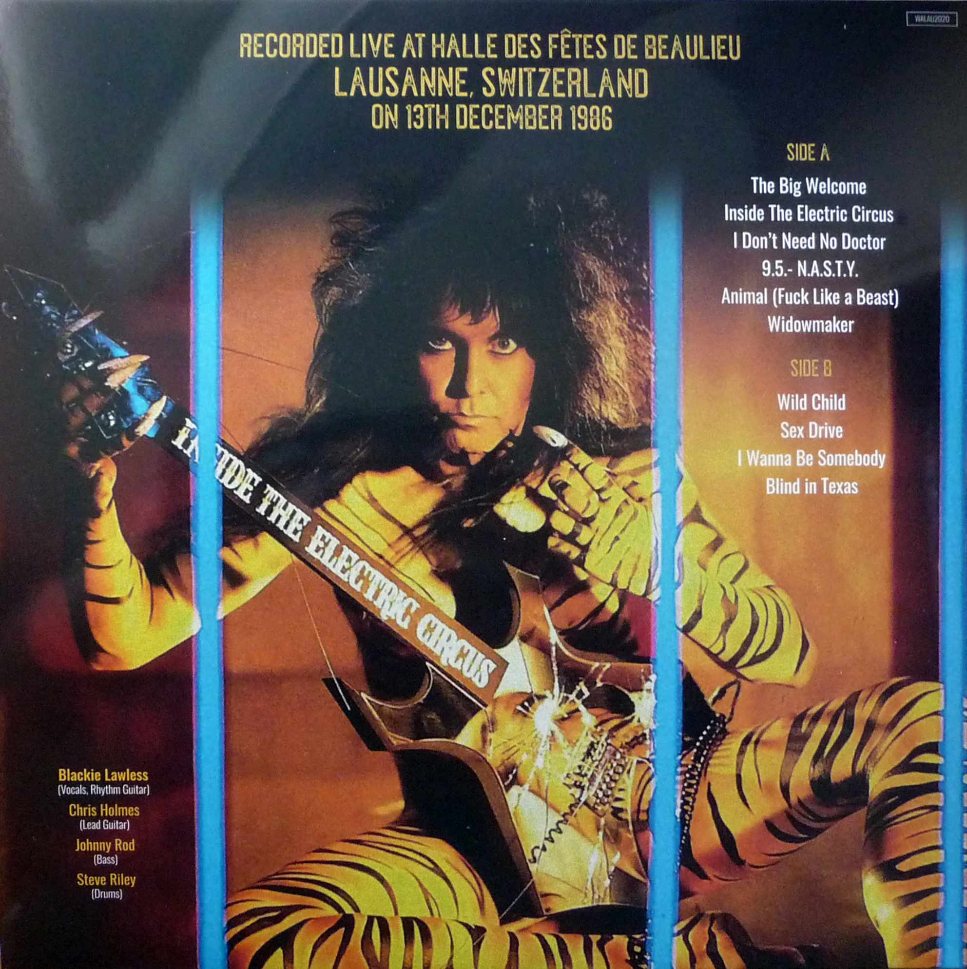 A1. The Big Welcome A2. Inside the Electric Circus A3. I Don't Need No Doctor A4. 9.5. - N.A.S.T.Y. A5. Animal (Fuck Like a Beast) A6. Widowmaker B1. Wild Child B2. Sex Drive B3. I Wanna Be Somebody B4. Blind in Texas