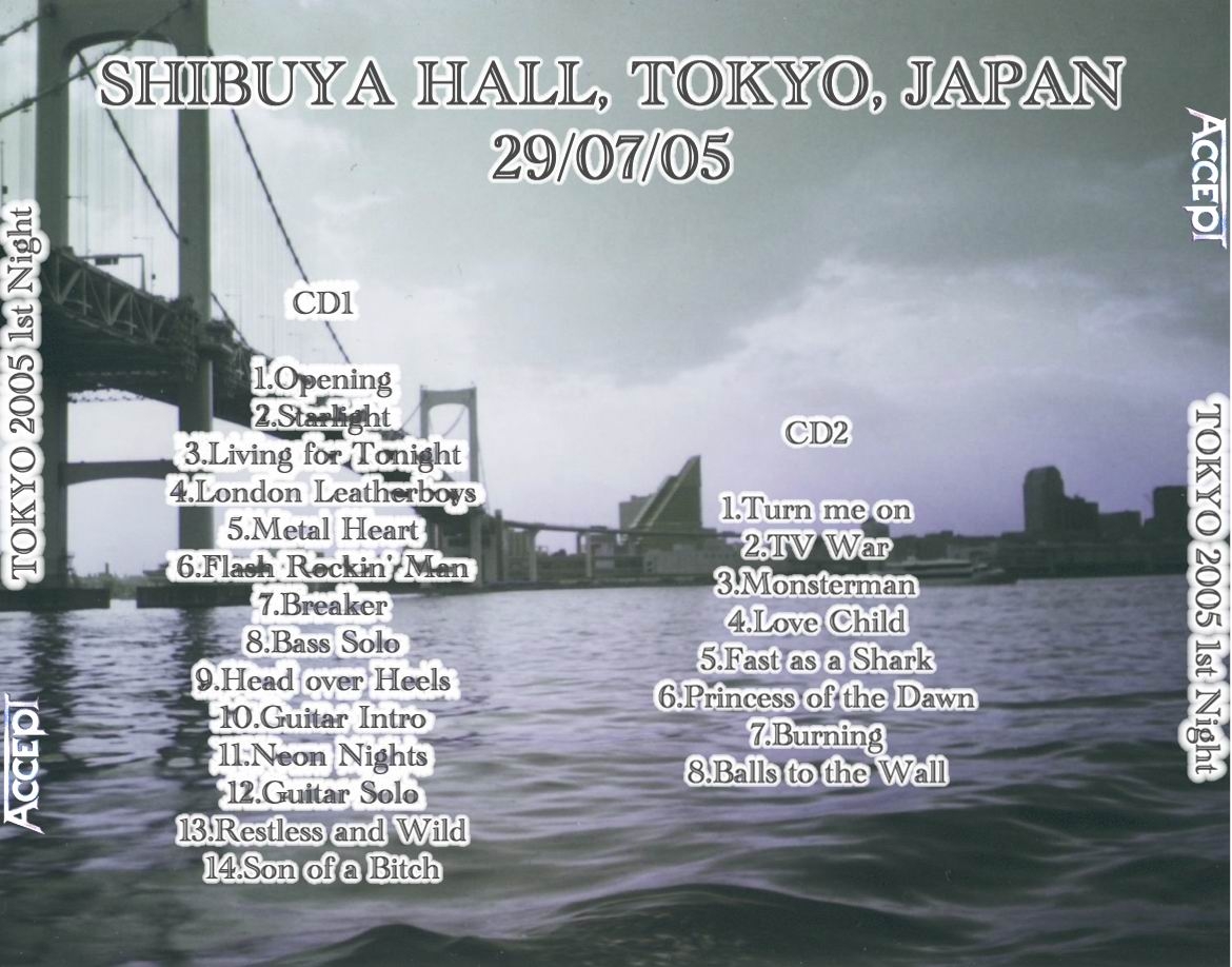 1. Intro 2. Starlight 3. Living for Tonite 4. London Leatherboys 5. Metal Heart 6. Flash Rockin' Man 7. Breaker 8. Bass Solo 9. Head Over Heels 10. Guitar Solo 11. Neon Nights 12. Guitar Solo (Bolero - Sabre Dance - Hall of the Mountain King - Pomp and Circumstance) 13. Restless and Wild 14. Son of a Bitch