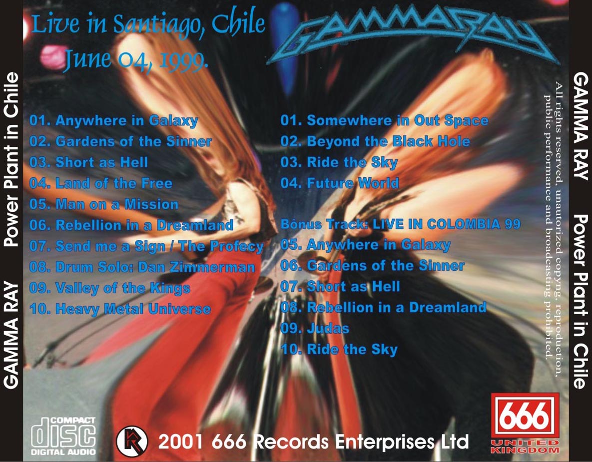 1. Anywhere in the Galaxy 2. Gardens of the Sinner 3. Short As Hell 4. Land of the Free 5. Man on a Mission 6. Rebellion in Dreamland 7. Send Me A Sign 8. Bass & Drum Solos 9. Valley of the Kings 10. Heavy Metal Universe