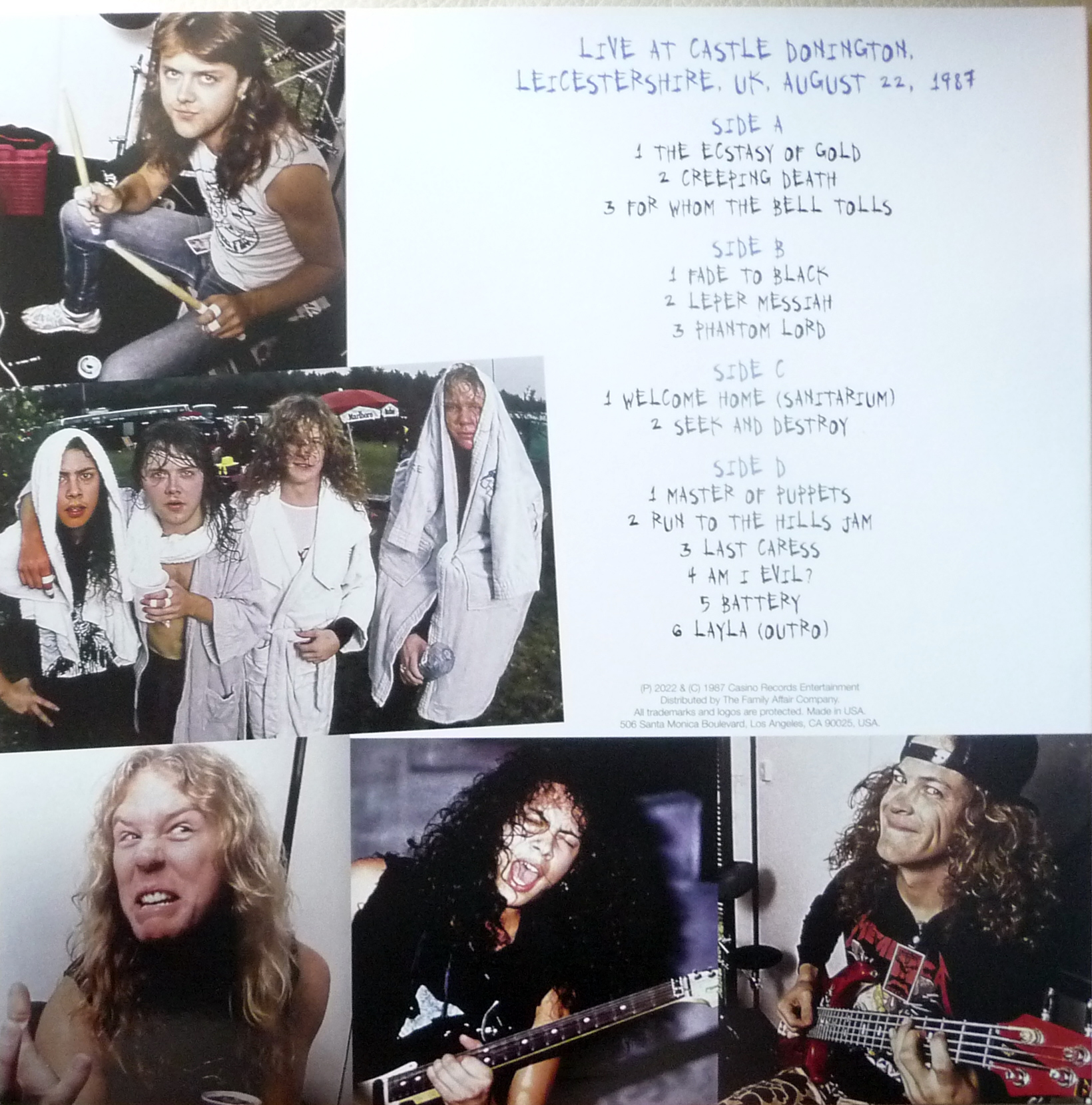 A1. The Ecstasy of Gold A2. Creeping Death A3. For Whom the Bell Tools B1. Fade to Black B2. Leper Messiah B3. Phantom Lord