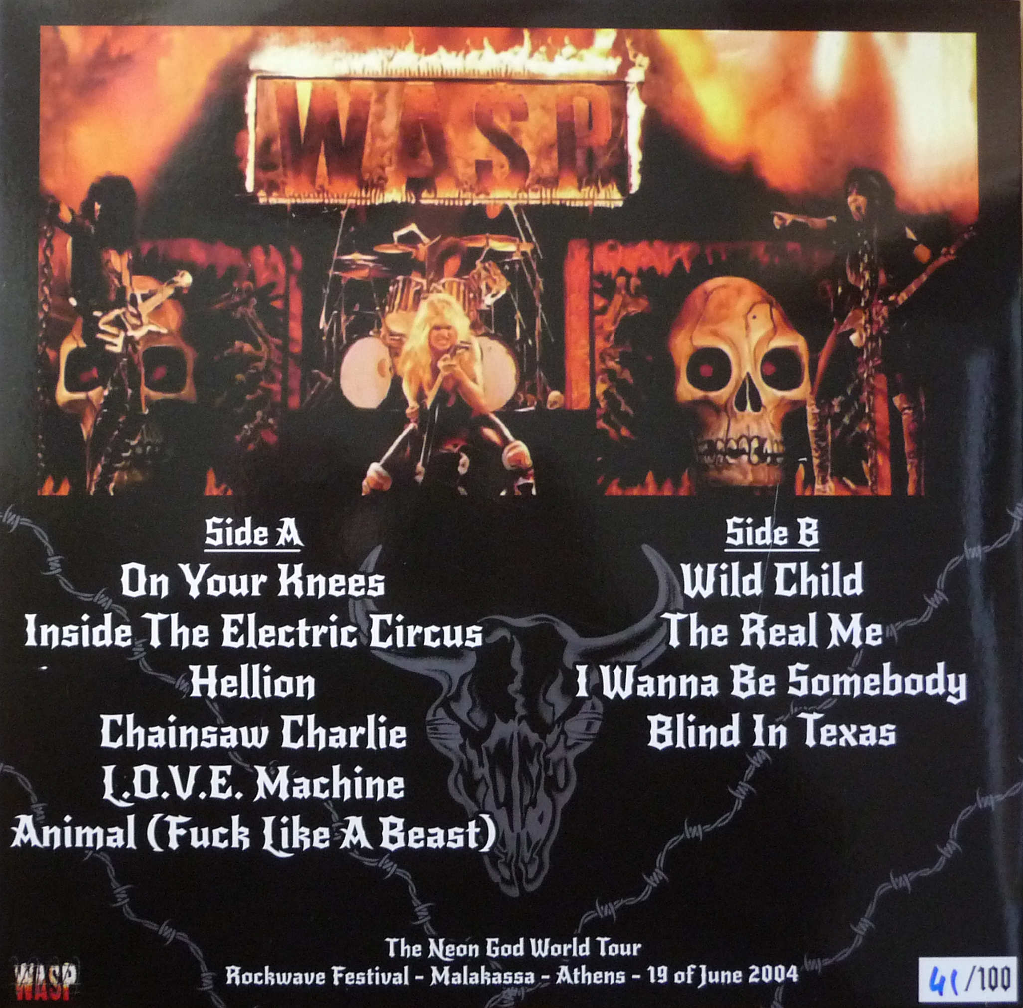 Overture A1. On Your Knees A2. Inside the Electric Circus A3. Hellion A4. Chainsaw Charlie (Murders in the New Morgue) A5. L.O.V.E. Machine A6. Animal (Fuck Like a Beast) B1. Wild Child What I'll Never Find Sister Sadie (And the Black Habits) B2. The Real Me B3. I Wanna Be Somebody Blackie's Acoustic Set : The Titanic Overture - The Idol - The Gypsy Meets the Boy - Sleeping (In the Fire) B4. Blind in Texas