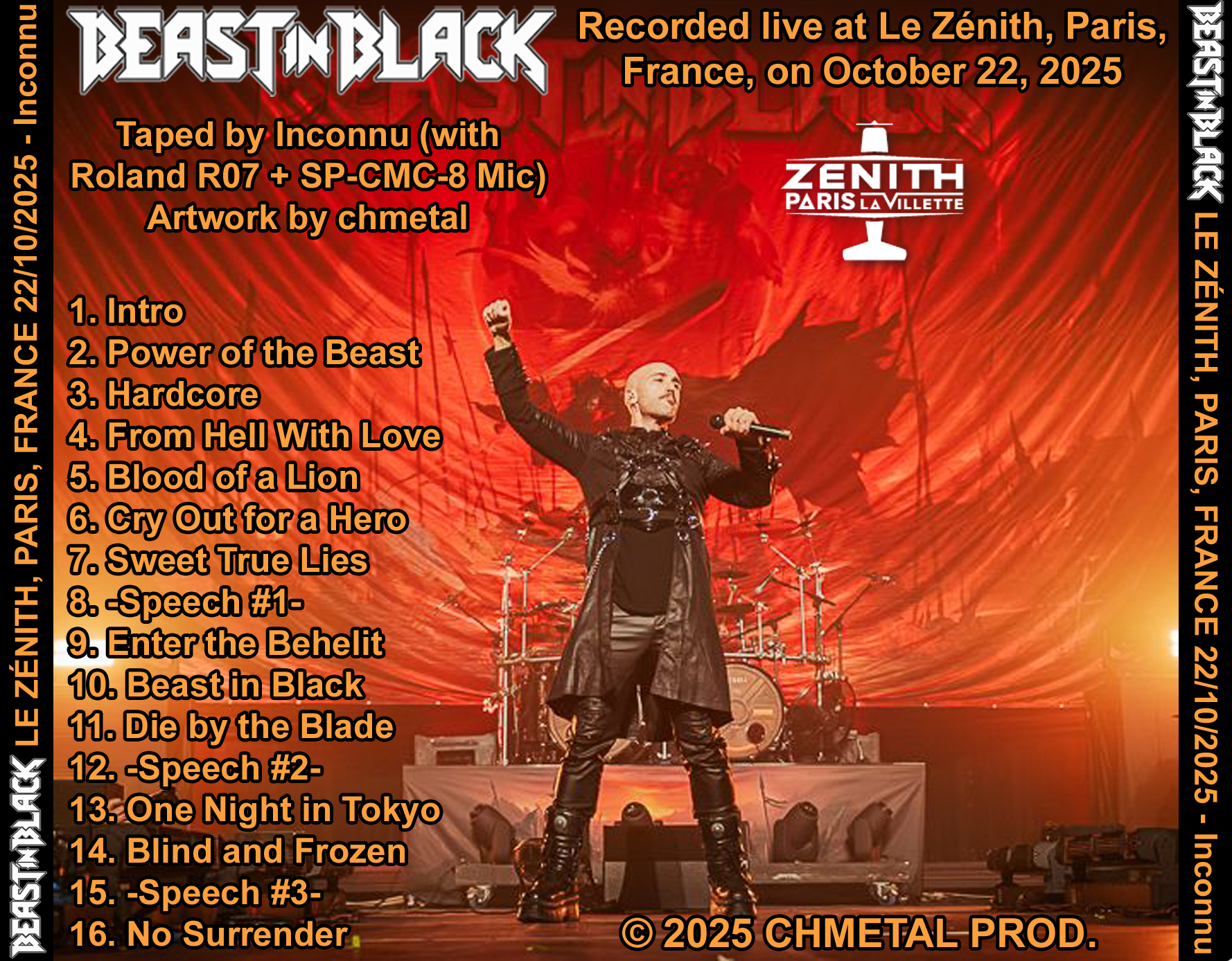 1. Intro 2. Power of the Beast 3. Hardcore 4. From Hell With Love 5. Blood of a Lion 6. Cry Out for a Hero 7. Sweet True Lies 8. -Speech #1- 9. Enter the Behelit 10. Beast in Black 11. Die by the Blade 12. -Speech #2- 13. One Night in Tokyo 14. Blind and Frozen 15. -Speech #3- 16. No Surrender