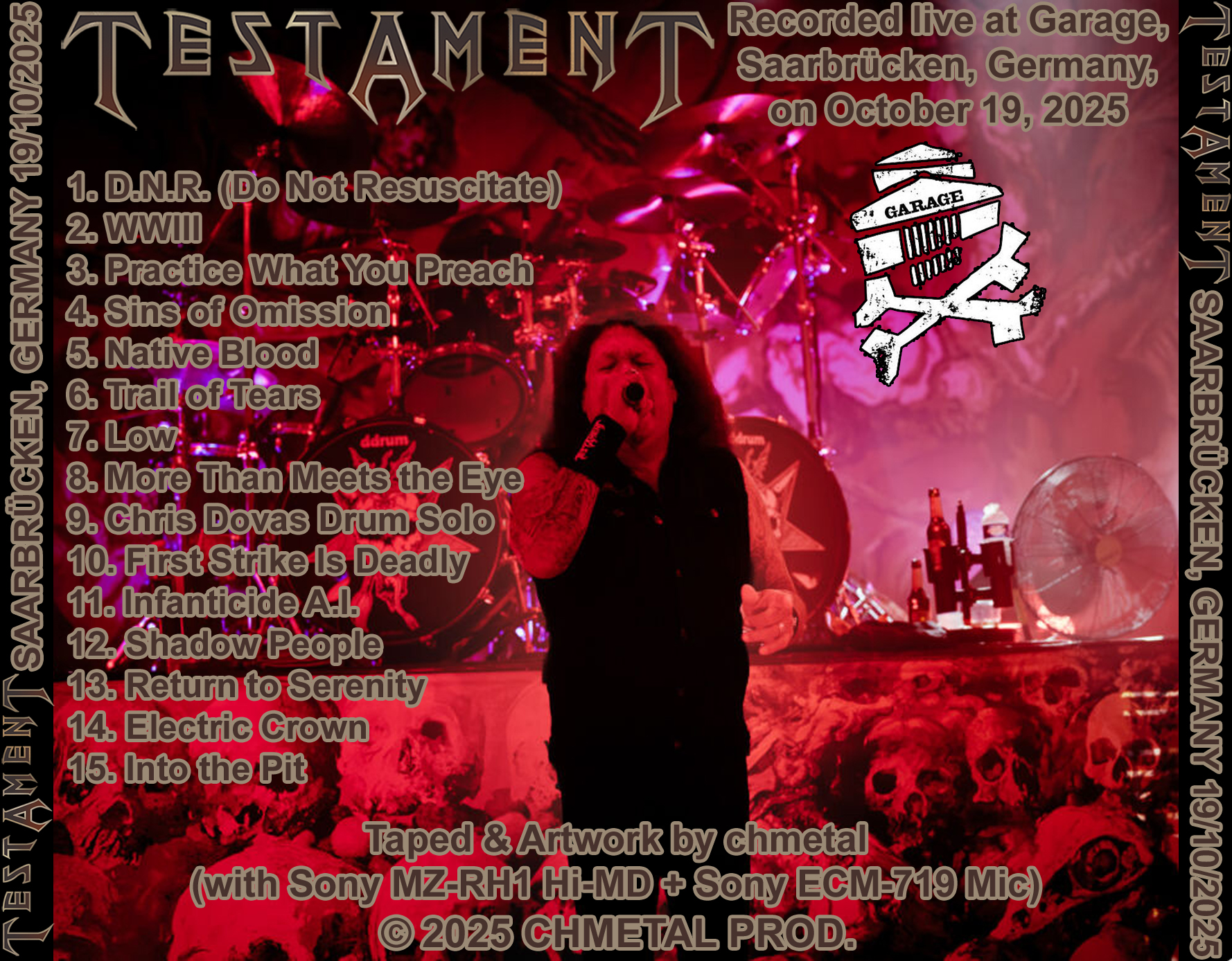 1. D.N.R. (Do Not Resuscitate) 2. WWIII 3. Practice What You Preach 4. Sins of Omission 5. Native Blood 6. Trail of Tears 7. Low 8. More Than Meets the Eye 9. Chris Dovas Drum Solo 10. First Strike Is Deadly 11. Infanticide A.I. 12. Shadow People 13. Return to Serenity 14. Electric Crown 15. Into the Pit
