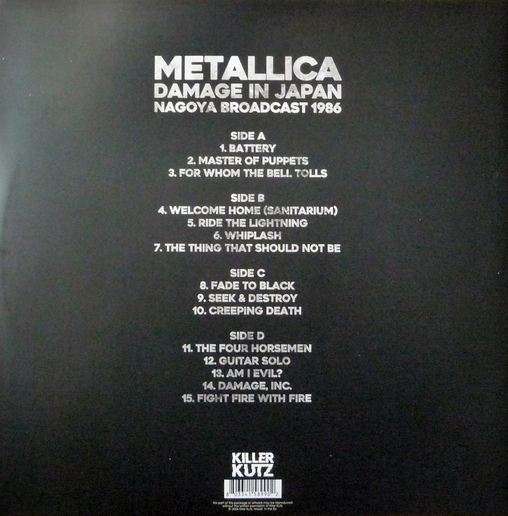 C1. Fade to Black C2. Seek & Destroy C3. Creeping Death D1. The Four Horsemen D2. Guitar Solo D3. Am I Evil? D4. Damage Inc. D5. Fight Fire with Fire