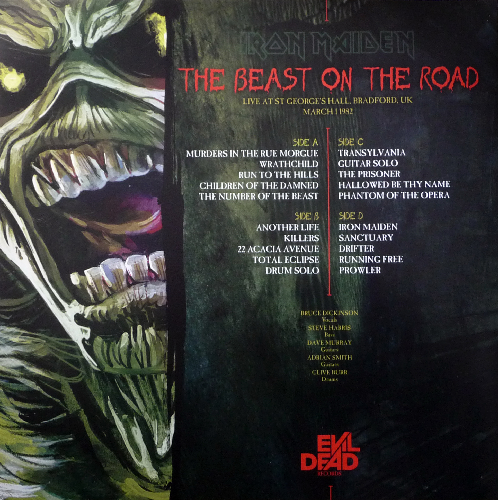 A1. Murders in the Rue Morgue A2. Wrathchild A3. Run to the Hills A4. Children of the Damned A5. Number of the Beast B1. Another Life B2. Killers B3. 22 Acacia Avenue B4. Total Eclipse B5. Drum Solo