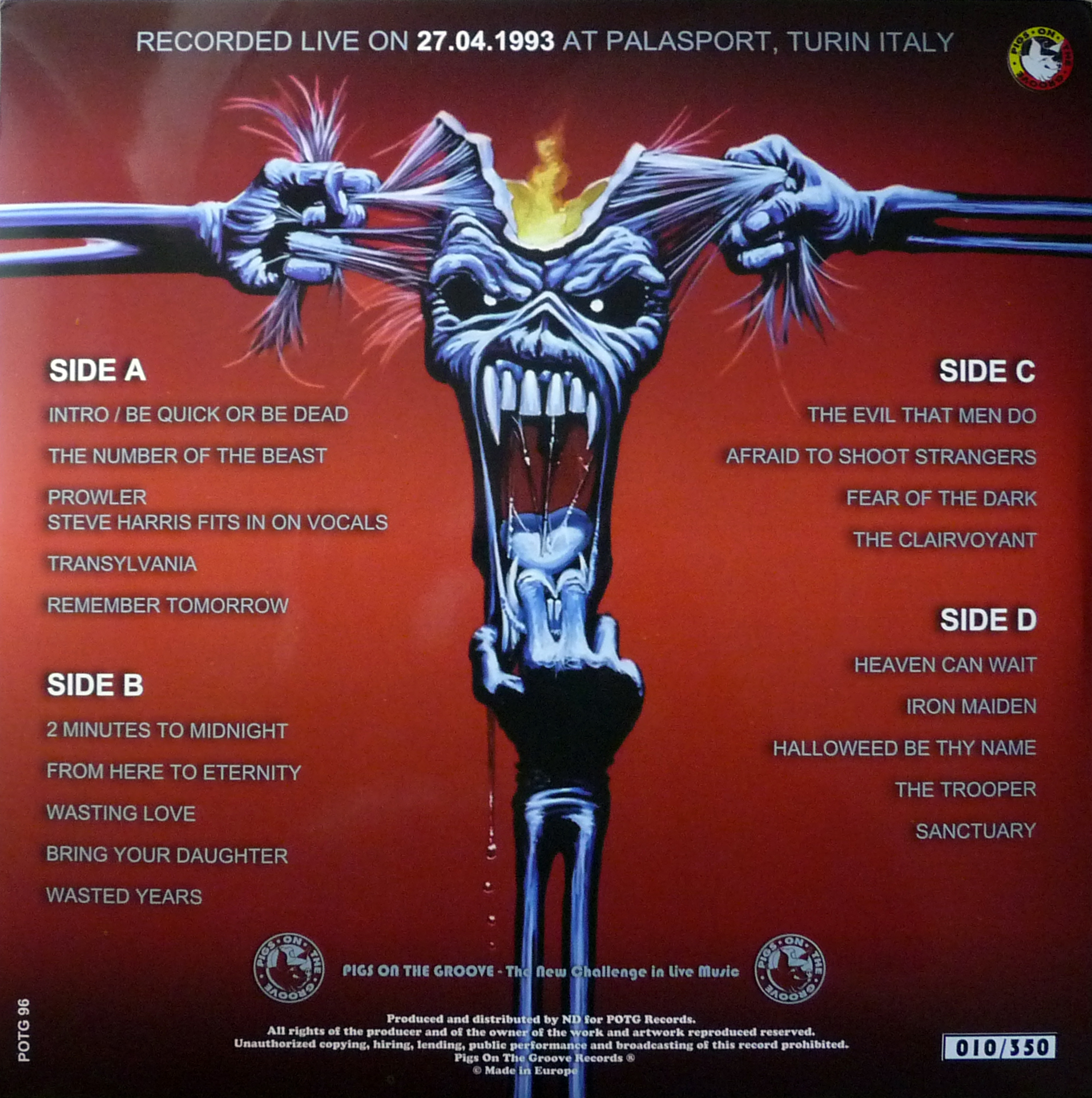A1. Intro / Be Quick or Be Dead A2. The Number of the Beast A3. Prowler A4. Transylvania A5. Remember Tomorrow B1. 2 Minutes to Midnight B2. From Here to Eternity B3. Wasting Love B4. Bring Your Daughter ... to the Slaughter B5. Wasted Years