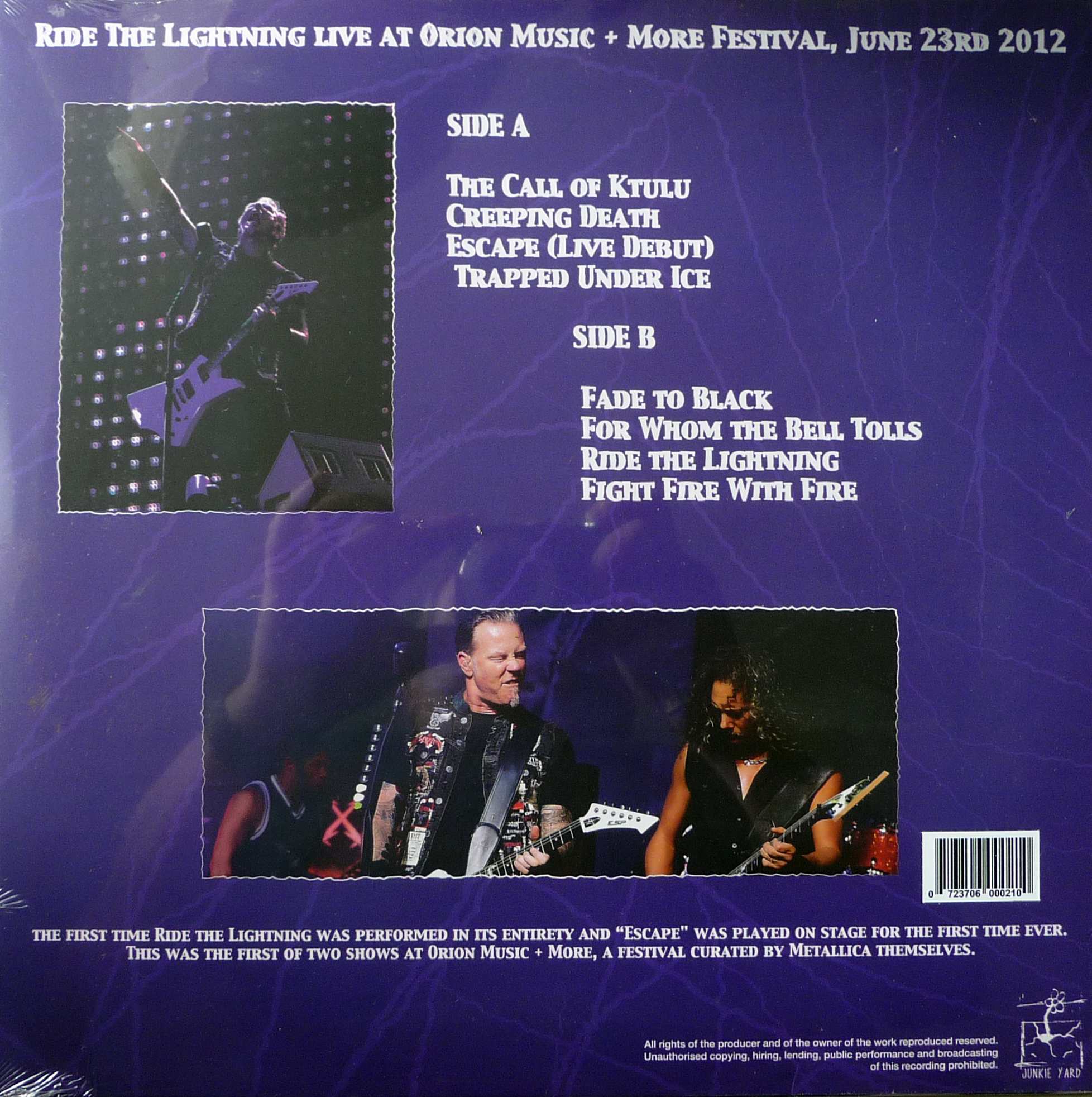 A1. The Call of Ktulu A2. Creeping Death A3. Escape A4. Trapped Under Ice B1. Fade to Black B2. From Whom the Bell Tolls B3. Ride the Lightning B4. Fight Fire with Fire