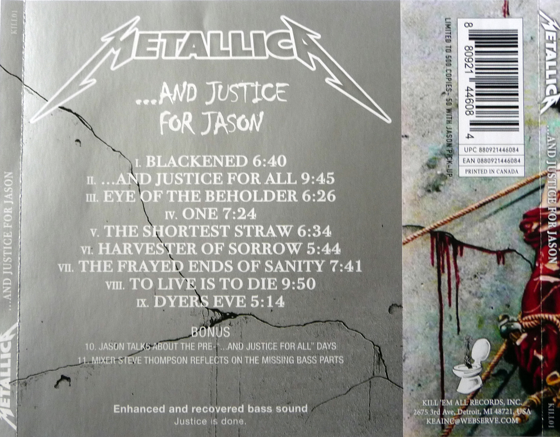 1. Blackened 2. ...And Justice for All 3. Eye of the Beholder 4. One 5. The Shortest Straw 6. Harvester of Sorrow 7. The Frayed Ends of Sanity 8. To Live Is to Die 9. Dyers Eve 10. Jason Talks About the Pre- "...And Justice for All" Days 11. Mixer Steve Thompson Reflects on the Missing Bass Parts