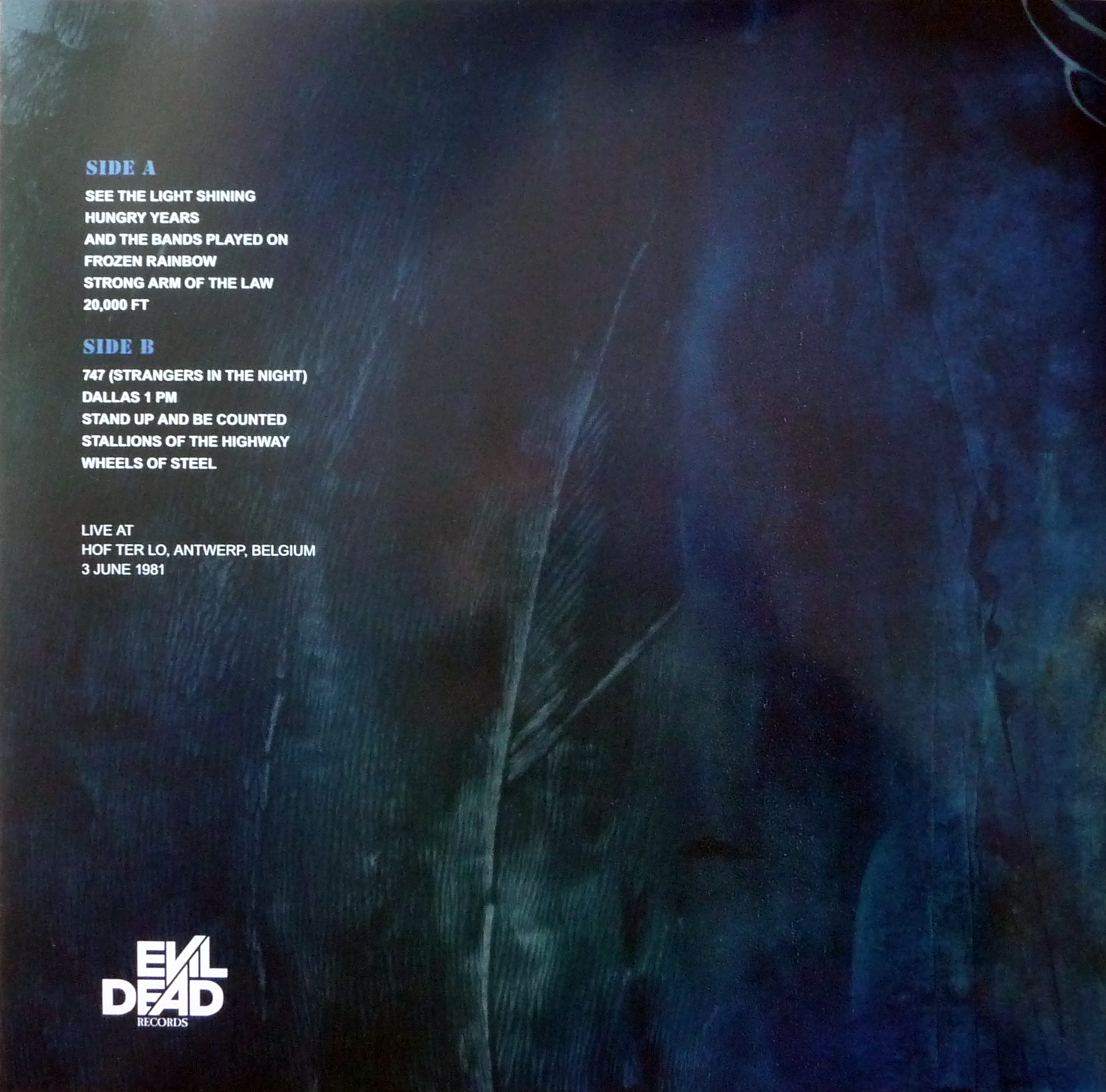 A1. See the Light Shining A2. Hungry Years A3. And the Bands Played On A4. Frozen Rainbow A5. Strong Arm of the Law A6. 20,000 Ft B1. 747 (Strangers in the Night) B2. Dallas 1 PM B3. Stand Up and Be Counted B4. Stallions on the Highway B5. Wheels of Steel