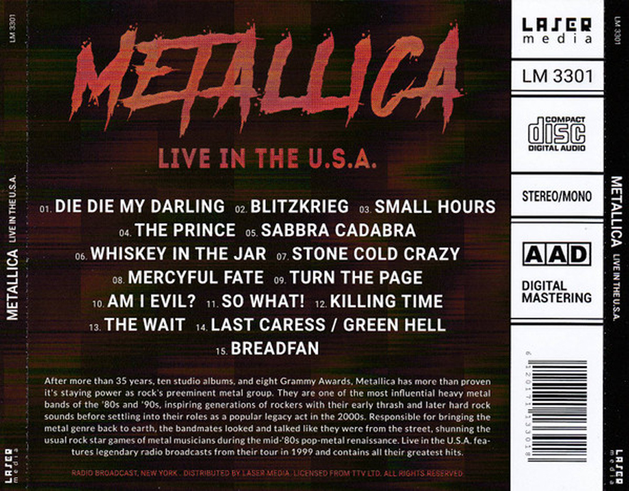 1. Die Die My Darling 2. Blitzkrieg 3. Small Hours 4. The Prince 5. Sabbra Cadabra 6. Whiskey in the Jar 7. Stone Cold Crazy 8. Mercyful Fate 9. Turn the Page 10. Am I Evil? 11. So What! 12. Killing Time 13. The Wait 14. Last Caress / Green Hell 15. Breadfan