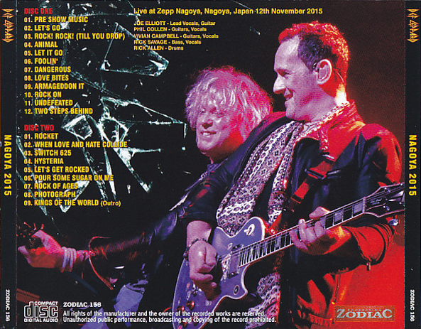 From original silver 2CDs Notes : Good sound quality from the 3rd show in Japan for the 2015 World Tour. This leg technically started the 'new' tour for the 2015 self titled release, but the band had already been on the road since April. 'Dangerous' makes its live debut. The setlist would be changed after the Japanese run for Australia and the UK. Hard to rationalize this was from ten years ago already.