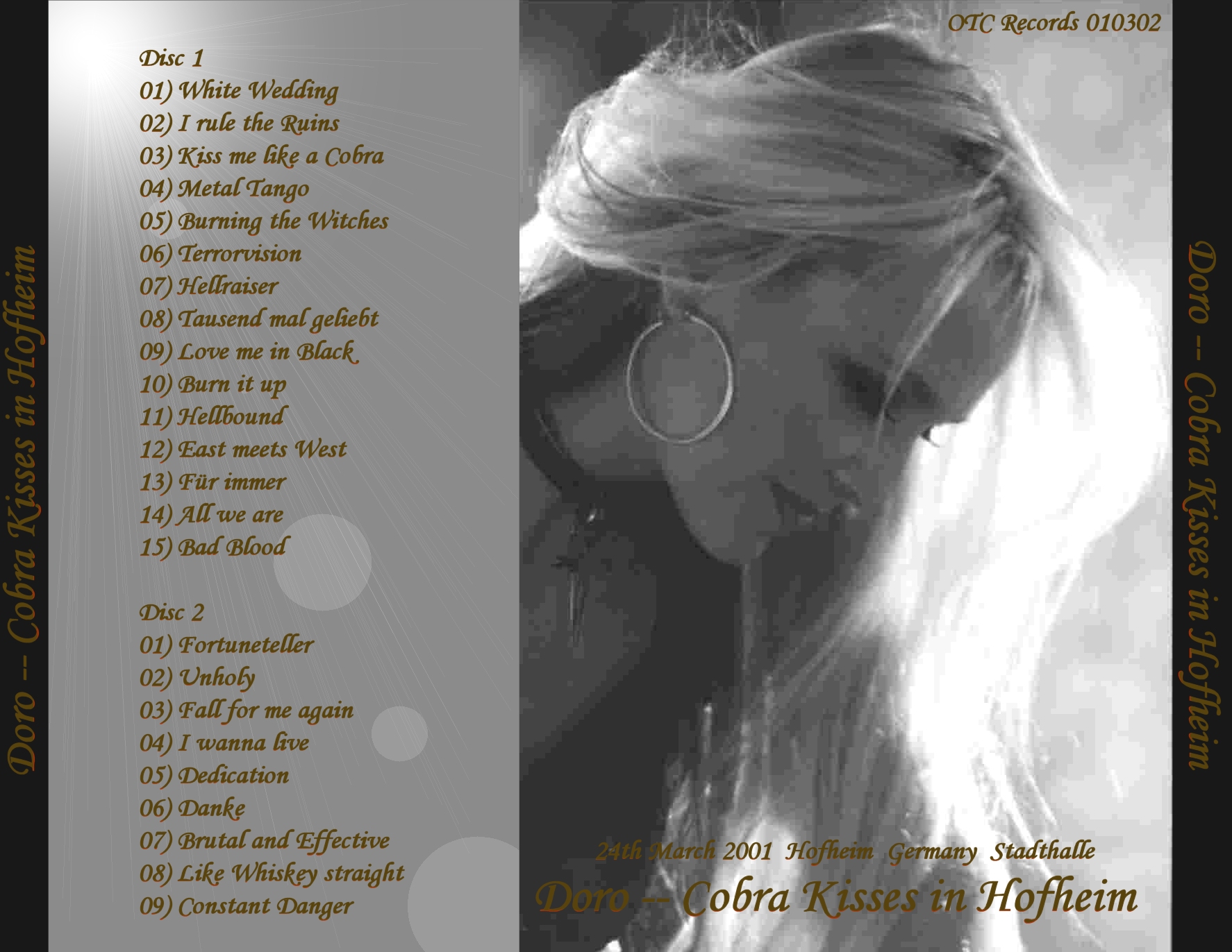 1. White Wedding 2. I Rule the Ruins 3. Kiss Me Like a Cobra 4. Metal Tango 5. Burning the Witches 6. Terrorvision 7. Hellraiser 8. Tausend Mal Gelebt 9. Love Me in Black 10. Burn It Up 11. Hellbound 12. East Meets West 13. Für Immer 14. All We Are 15. Bad Blood