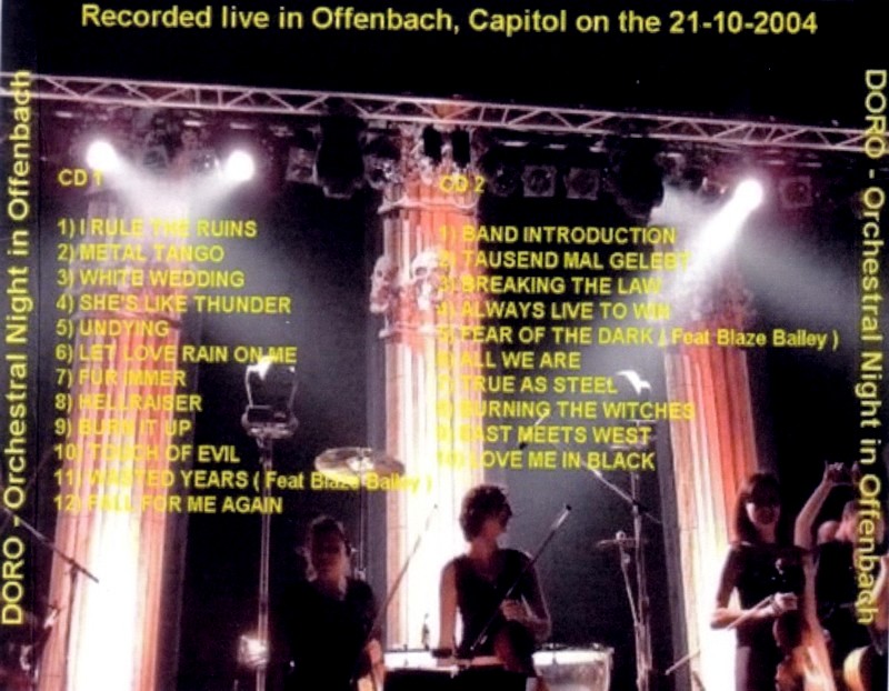 1. I Rule the Ruins 2. Metal Tango 3. White Wedding 4. She's Like Thunder 5. Undying 6. Let Love Rain on Me 7. Für Immer 8. Hellraiser 9. Burn It Up 10. Touch of Evil 11. Wasted Years (Feat. Blaze Bailey) 12. Fall for Me Again