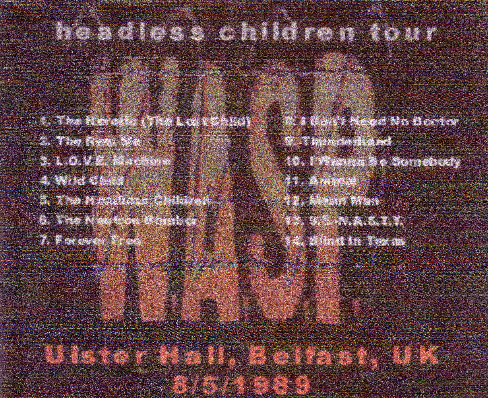 1. The Heretic (The Lost Child) 2. The Real Me 3. L.O.V.E. Machine 4. Wild Child 5. The Headless Children 6. The Neutron Bomber 7. Forever Free 8. I Don't Need No Doctor 9. Thunderhead 10. I Wanna Be Somebody 11. Animal (Fuck Like a Beast) 12. Mean Man 13. 9.5. - N.A.S.T.Y. 14. Blind in Texas