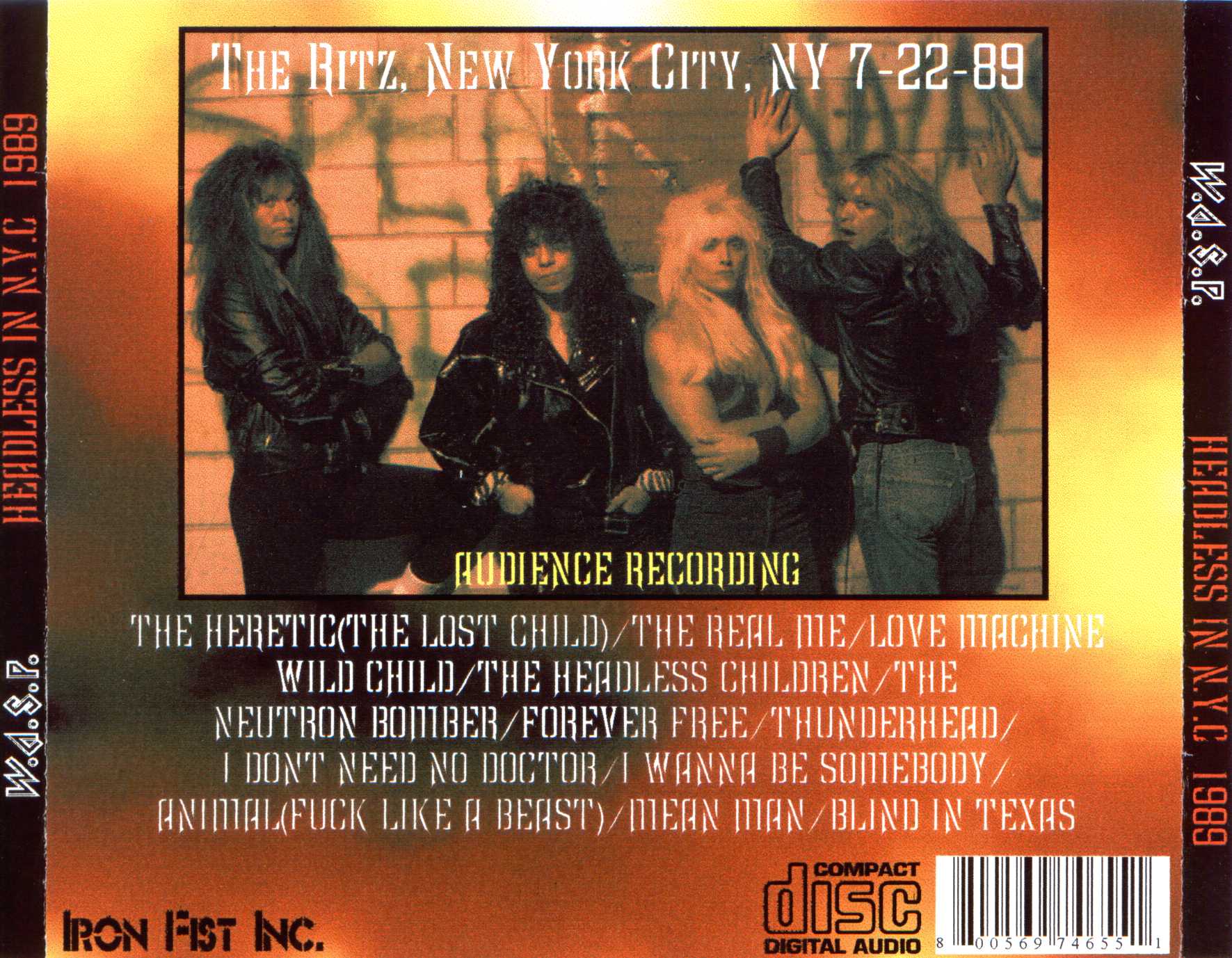 1. The Heretic (The Lost Child) 2. The Real Me 3. L.O.V.E. Machine 4. Wild Child 5. The Headless Children 6. The Neutron Bomber 7. Forever Free 8. Thunderhead 9. I Don't Need No Doctor 10. I Wanna Be Somebody 11. Animal (Fuck Like aBeast) 12. Mean Man 13. Blind inTexas