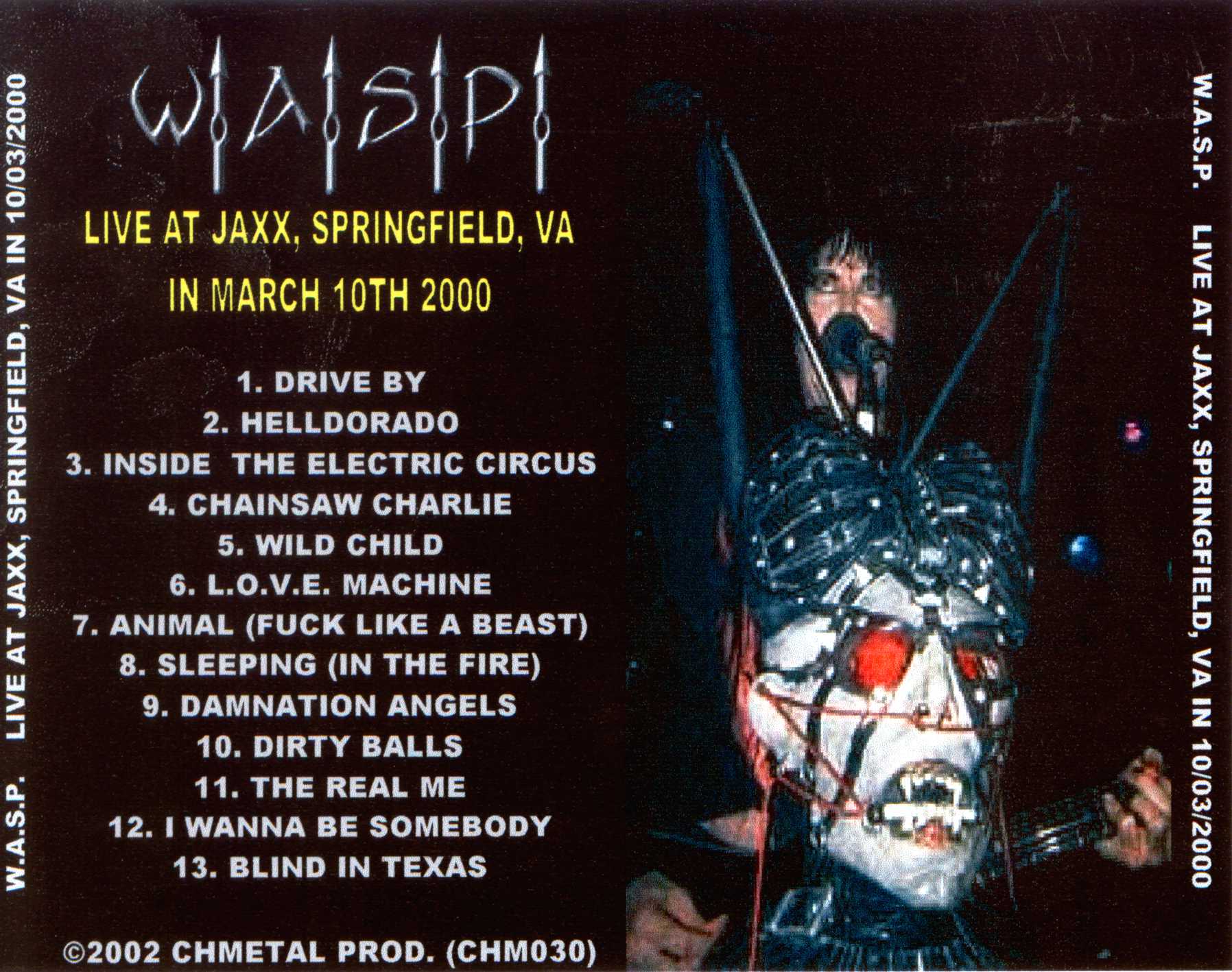 1. Drive by 2. Helldorado 3. Inside the Electric Circus 4. Chainsaw Charlie 5. Wild Child 6. L.O.V.E. Machine 7. Animal (Fuck Like a Beast) 8. Sleeping (In the Fire) 9. Damnation Angels 10. Dirty Balls 11. The Real Me 12. I Wanna Be Somebody 13. Blind in Texas