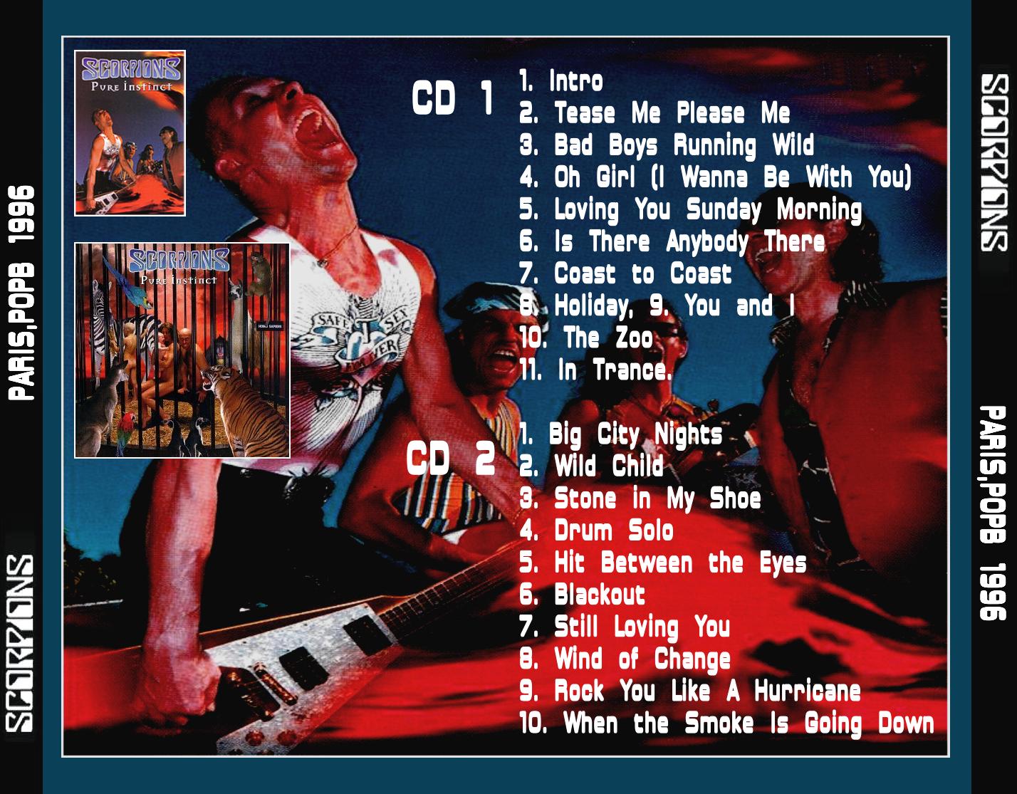 1. Big City Nights 2. Wild Child 3. Stone in My Shoe 4. Drum Solo 5. Hit Between the Eyes 6. Blackout 7. Still Loving You 8. Wind of Change 9. Rock You Like a Hurricane 10. When the Smoke Is Going Down