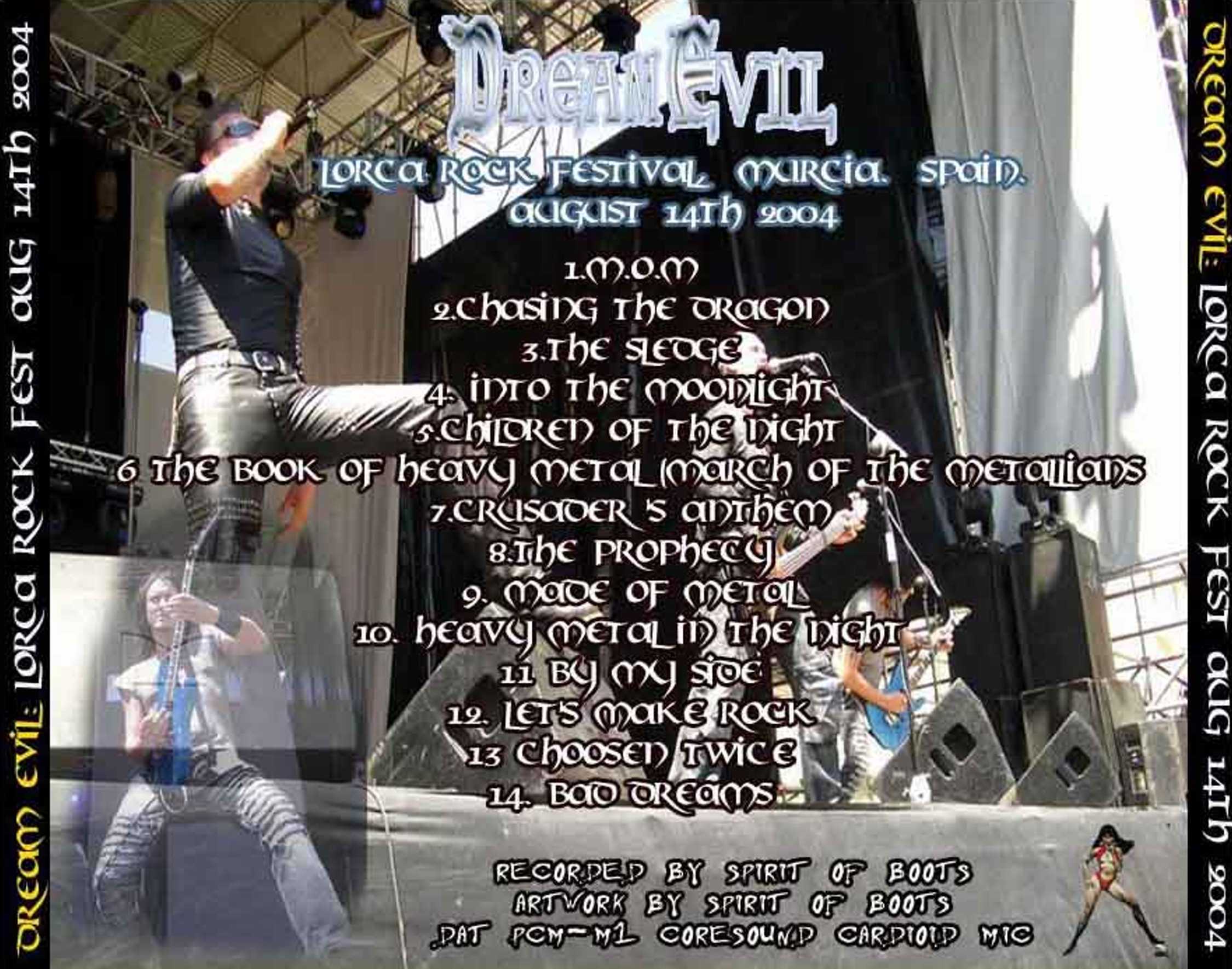 1. M.O.M 2. Chasing the Dragon 3. The Sledge 4. Into the Moonlight 5. Children of the Night 6. The Book of Heavy Metal 7. Crusader's Anthem 8. The Prophecy 9. Made of Metal 10. Heavy Metal in the Night 11. By My Side 12. Let's Make Rock 13. Chosen Twice 14. Bad Dreams