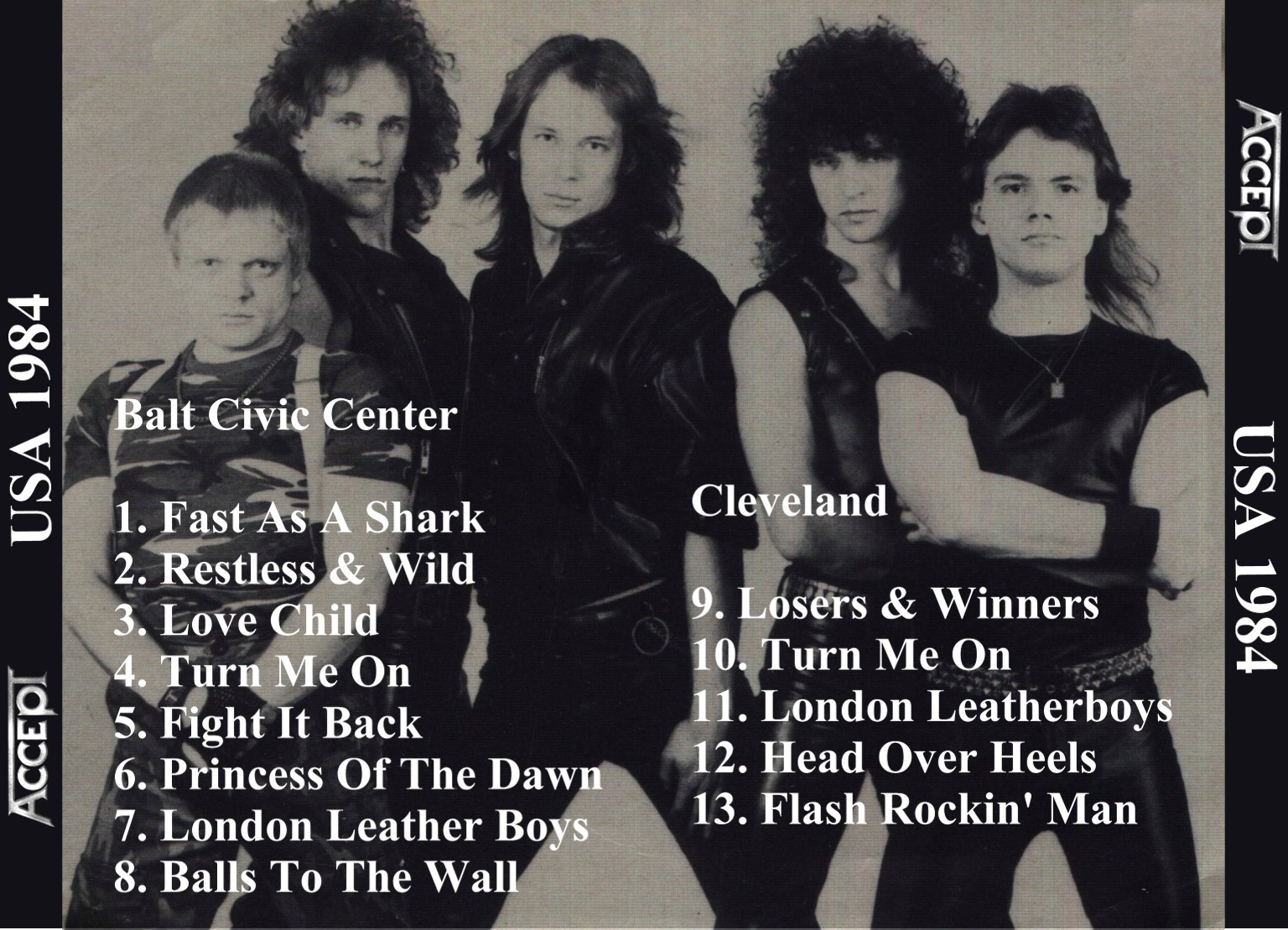 1. Fast As a Shark 2. Restless and Wild 3. Love Child 4. Turn Me On 5. Fight It Back 6. Princess of the Dawn 7. London Leatherboys 8. Balls to the Balls