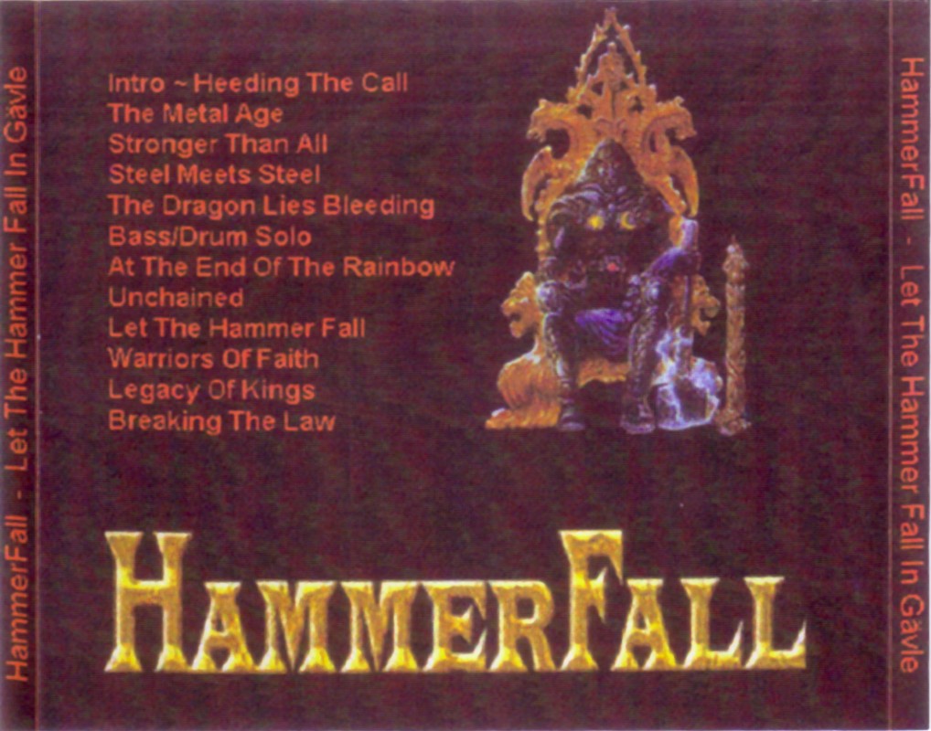 1. Intro / Heading the Call 2. The Metal Age 3. Stronger Than Hall 4. Steel Meets Steel 5. The Dragon Lies Bleeding 6. Bass / Drum Solo 7. At the End of the Rainbow 8. Unchaimed 9. Let the Hammer Fall 10. Warriors of Faith 11. Legacy of Kings 12. Breaking the Law