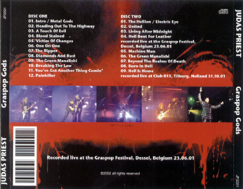 1. Intro / Metal Gods 2. Heading Out to the Highway 3. A Touch of Evil 4. Blood Stained 5. Victim of Changes 6. One on One 7. The Ripper 8. Diamonds and Rust 9. The Green Manalishi 10. Breaking the Law 11. You've Got Another Thing Comin' 12. Painkiller