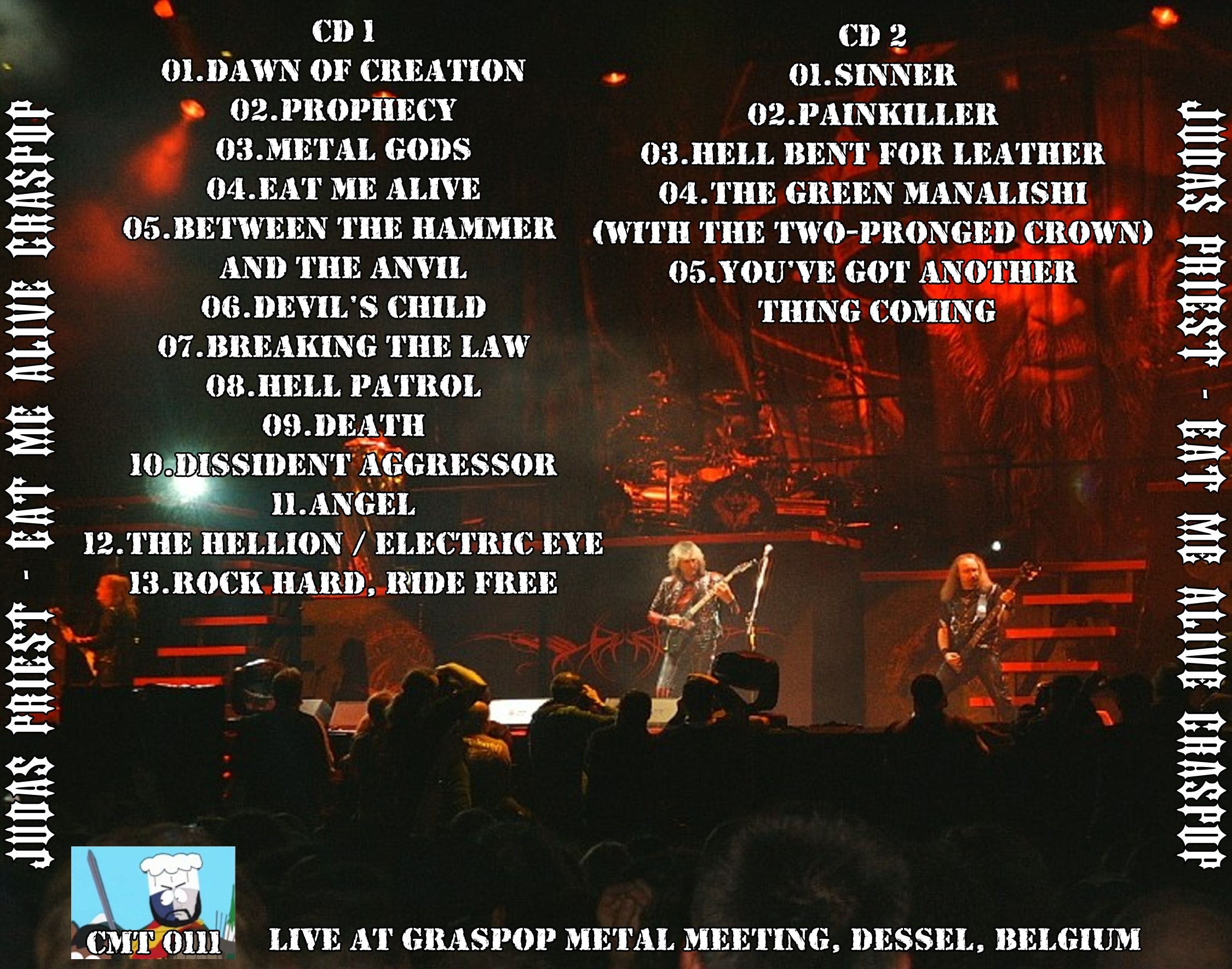 1. Dawn of Creation 2. Prophecy 3. Metal Gods 4. Eat Me Alive 5. Between the Hammer and the Anvil 6. Devil’s Child 7. Breaking the Law 8. Hell Patrol 9. Death 10. Dissident Aggressor 11. Angel 12. The Hellion / Electric Eye 13. Rock Hard, Ride Free