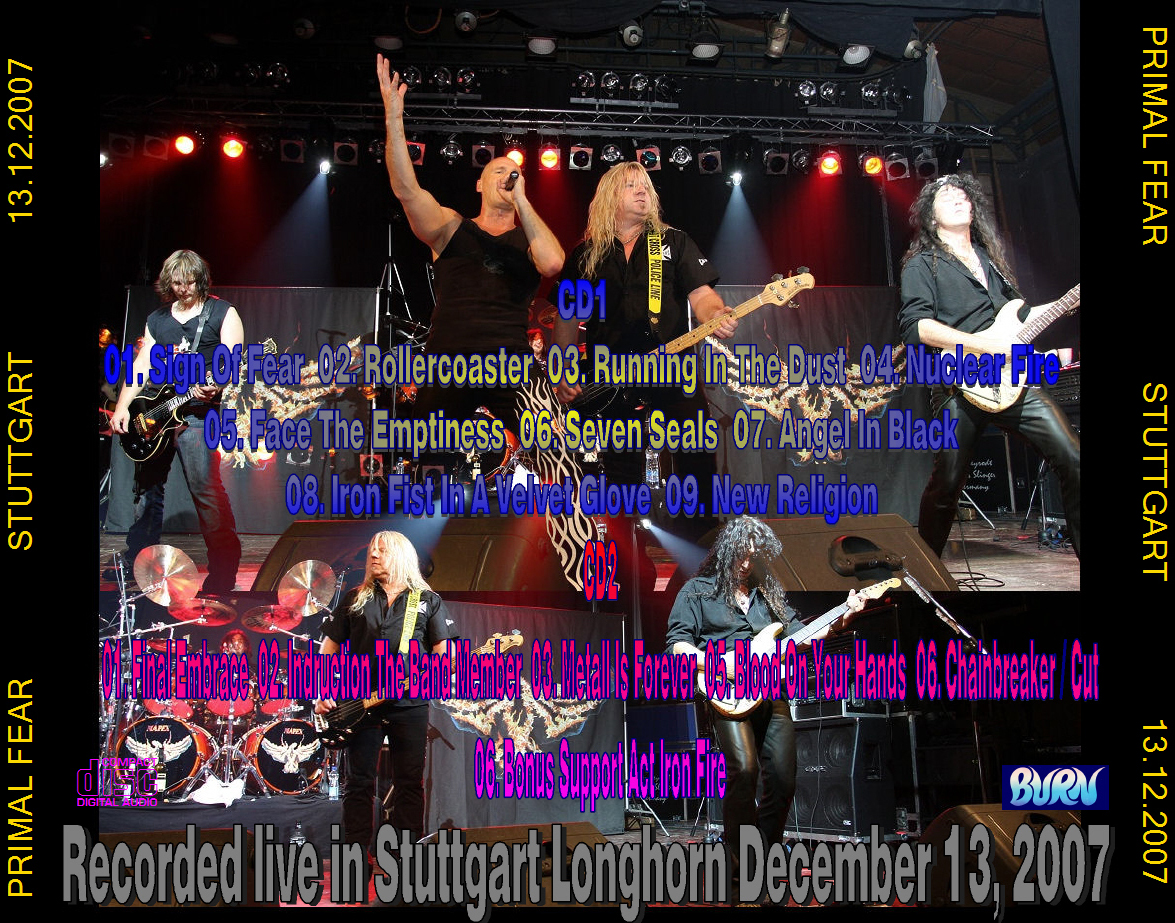 1. Sign of Fear 2. Rollercoaster 3. Running in the Dust 4. Nuclear Fire 5. Face the Emptiness 6. Seven Seals 7. Angel in Black 8. Iron Fist in a Velvet Glove 9. New Religion