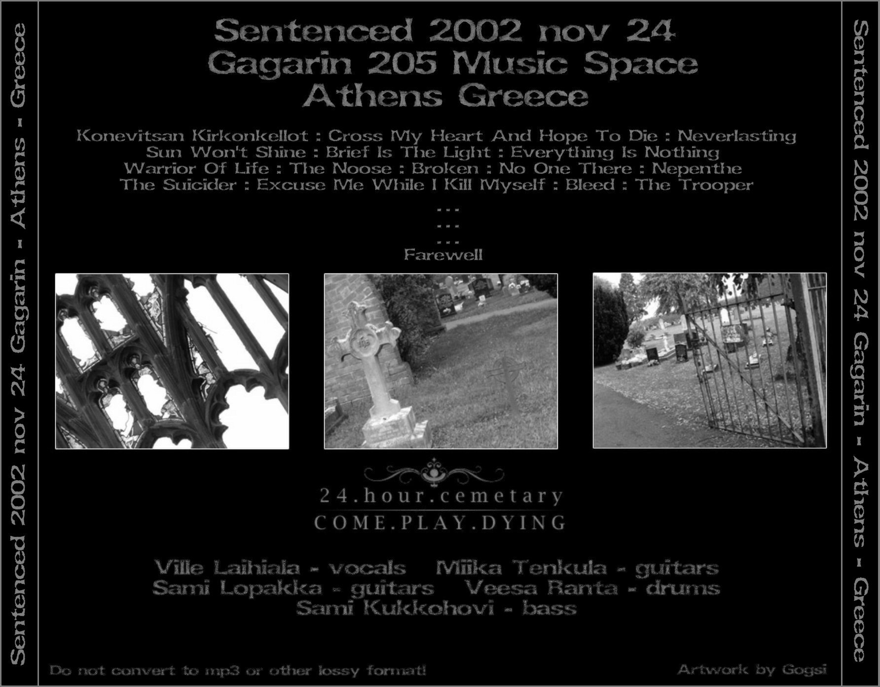 1. Konevitsan Kirkonkellot 2. Cross My Heart and Hope to Die 3. Neverlasting 4. Sun Won't Shine 5. Brief Is the Light 6. Everything Is Nothing 7. Warrior of Life 8. The Noose 9. Broken 10. No One There 11. Nepenthe 12. The Suicider 13. Excuse Me While I Kill Myself 14. Bleed 15. The Trooper 16. Farewell