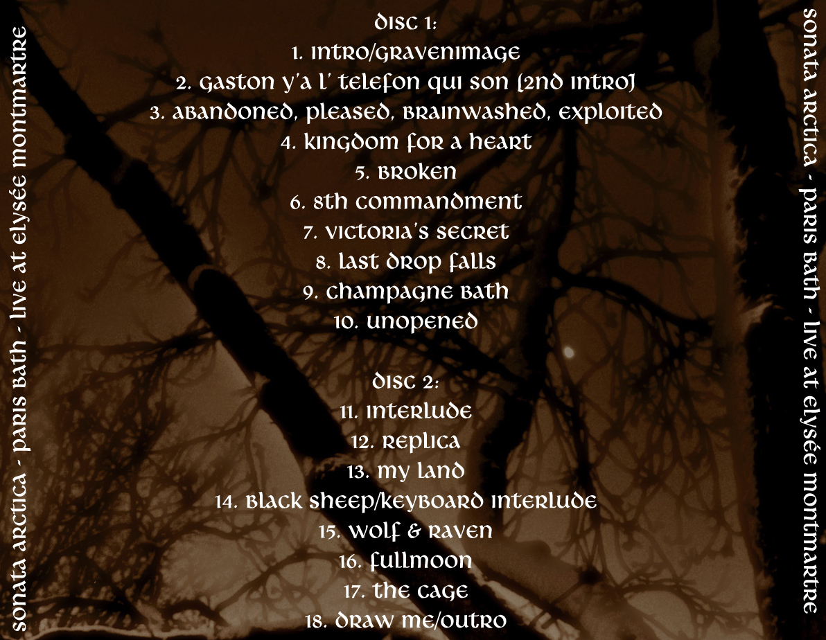 1. Intro (Graven Image) 2. Intro 2 (Gaston) 3. Abandonned, Pleased, Brainwashed, Exploited 4. Kingdom for a Heart 5. Broken 6. 8th Commandment 7. Victoria's Secret 8. Last Drop Falls 9. Champagne Bath 10. Unopened