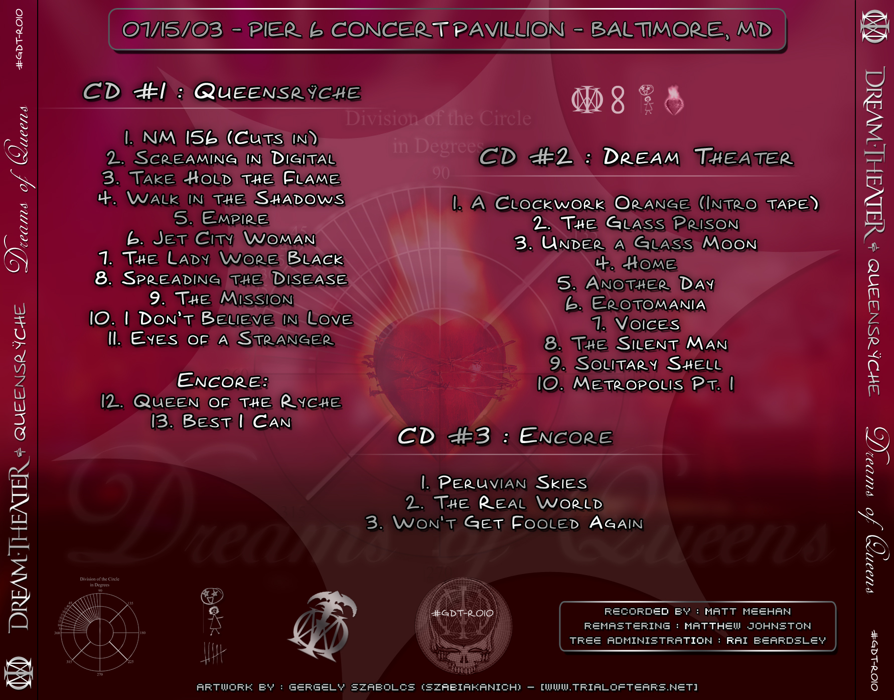 1. NM 156 2. Screaming in Digital 3. Take Hold the Flame 4. Walk in the Shadows 5. Empire 6. Jet City Woman 7. The Lady Wore Black 8. Spreading the Disease 9. The Mission 10. I Don't Believe in Love 11. Eyes of a Stranger 12. Queen of the Rÿche 13. Best I Can