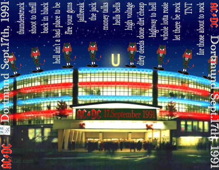 1. The Jack 2. Money Talks 3. Hells Bells 4. High Voltage 5. Dirty Deeds Done Dirt Cheap 6. Highway to Hell 7. Whole Lotta Rosie 8. Let There Be Rock 9. TNT 10. For Those About to Rock (We Salute You)