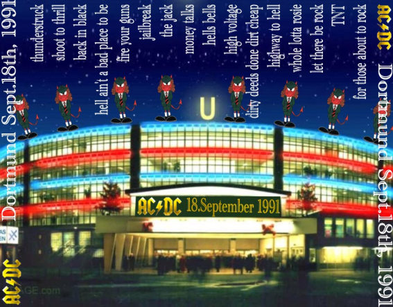 1. The Jack 2. Money Talks 3. Hells Bells 4. High Voltage 5. Dirty Deeds Done Dirt Cheap 6. Highway to Hell 7. Whole Lotta Rosie 8. Let There Be Rock 9. TNT 10. For Those About to Rock (We Salute You)