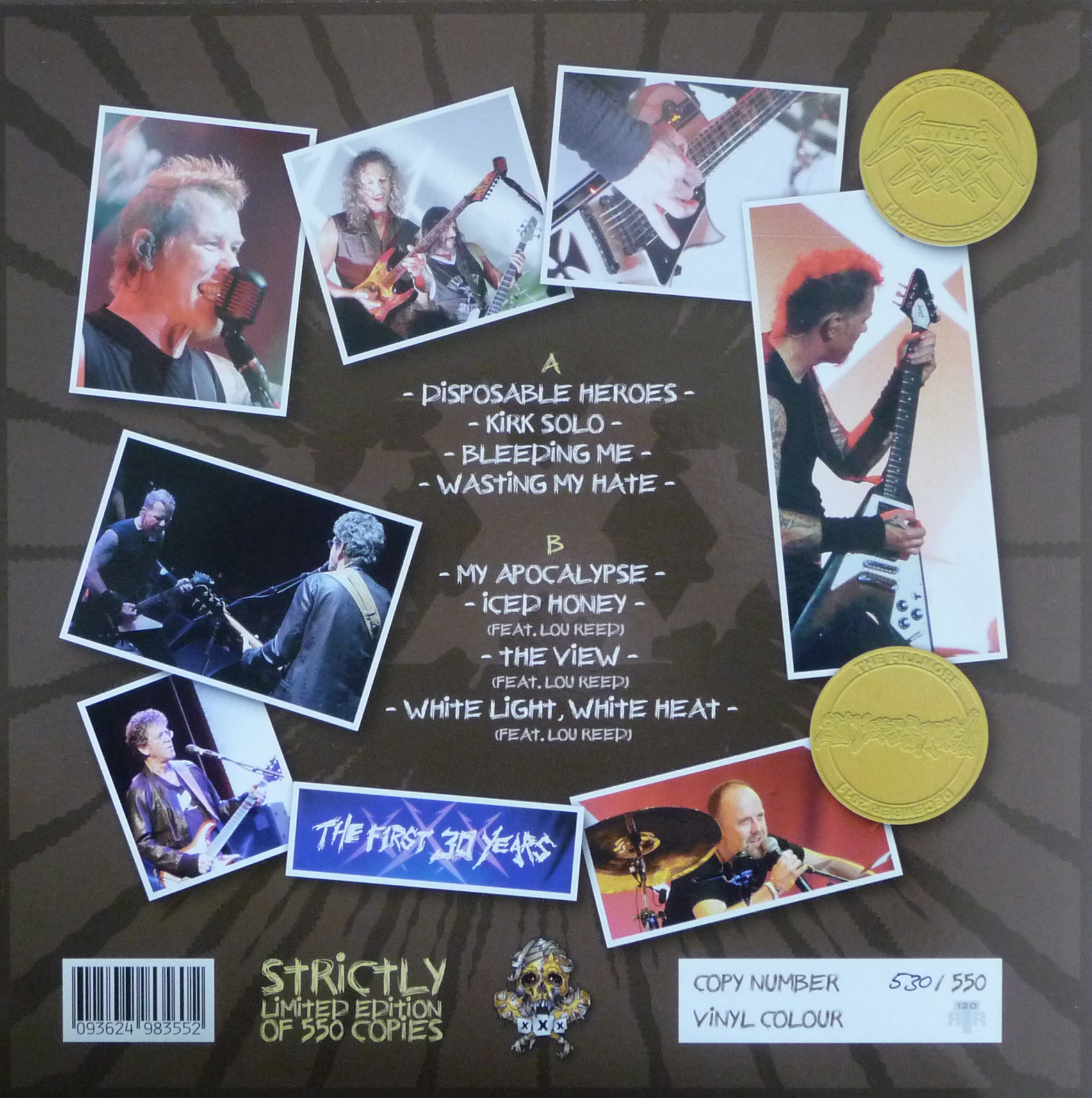 A1. Disposable Heroes A2. Kirk Solo A3. Bleeding Me A4. Wasting My Hate B1. My Apocalypse B2. Iced Honey (Feat. Lou Reed) B3. The View (Feat. Lou Reed) B4. White Light, White Heat (Feat. Lou Reed)