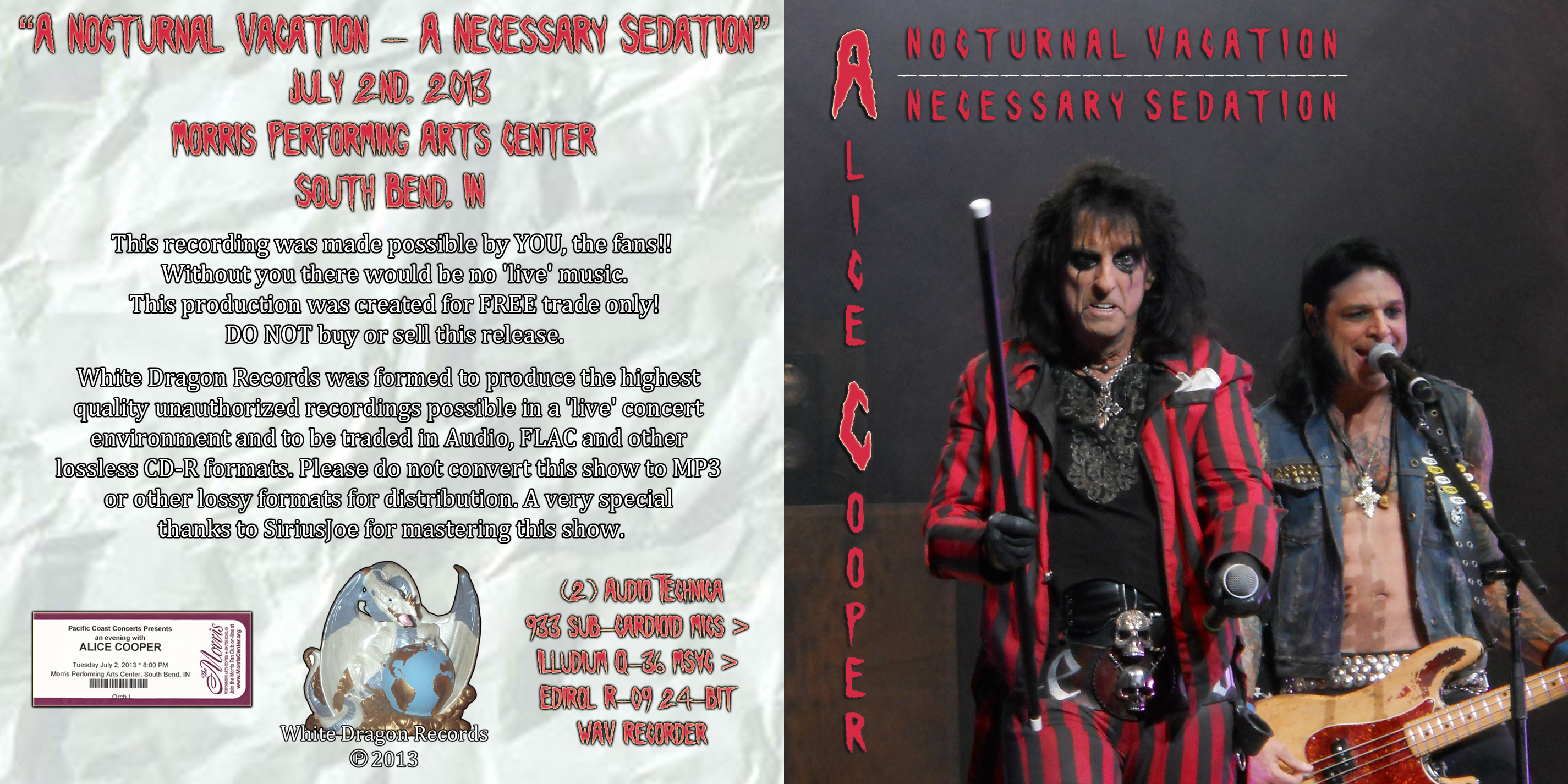 1. Welcome to My Nightmare 2. Go to Hell 3. Devil's Food 4. Feed My Frankenstein 5. Ballad of Dwight Fry 6. I Love the Dead 7. Break on Through (To the Other Side) 8. Revolution 9. Foxy Lady 10. My Generation 11. I'm Eighteen 12. Poison 13. School's Out
