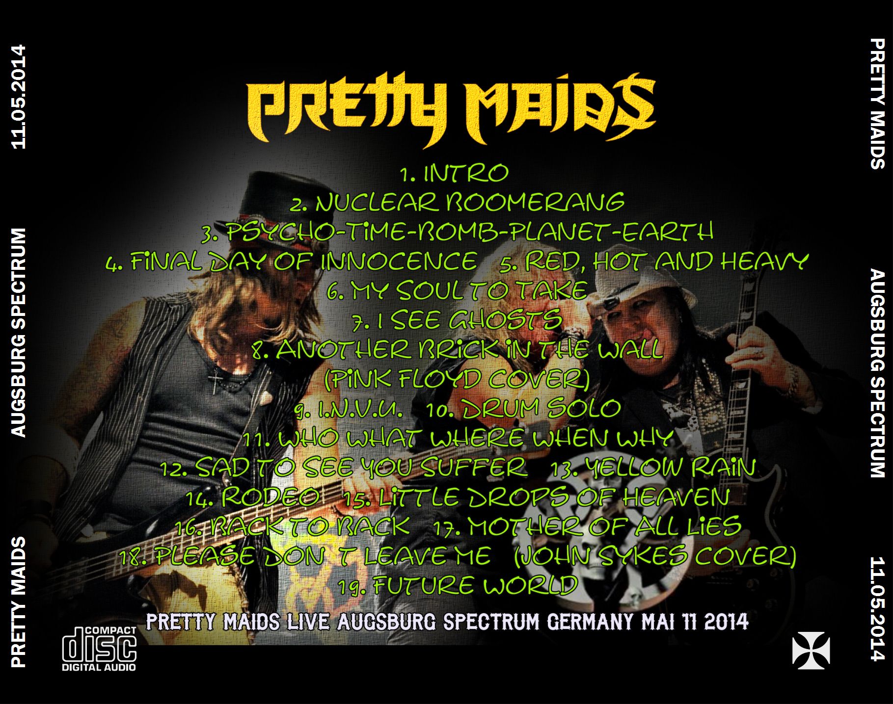 1. Intro 2. Nuclear Boomerang 3. Psycho-Time-Bomb-Planet-Earth 4. Final Day of Innocence 5. Red, Hot and Heavy 6. My Soul to Take 7. I See Ghosts 8. Another Brick in the Wall (Pink Floyd cover) 9. I.N.V.U. 10. Drum Solo 11. Who What Where When Why 12. Sad to See You Suffer