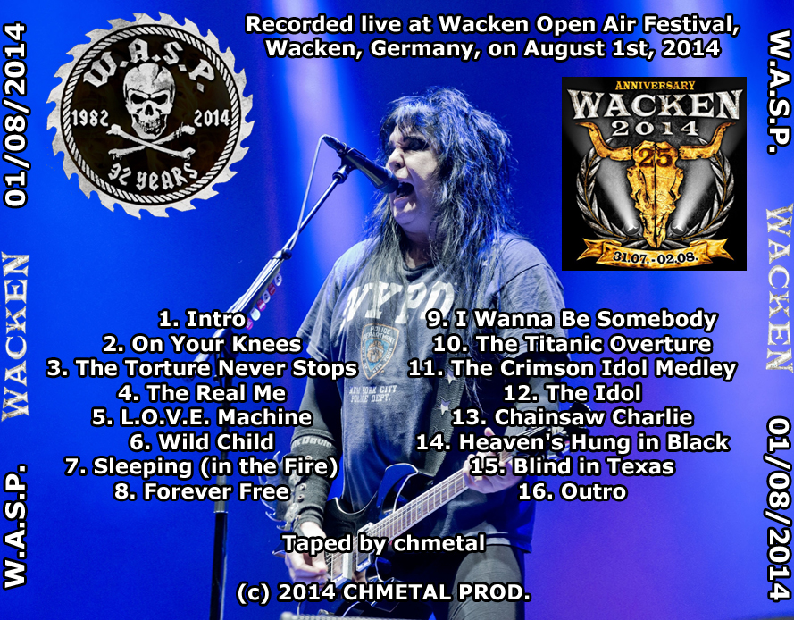 1. Intro 2. On Your Knees 3. The Torture Never Stops 4. The Real Me 5. L.O.V.E. Machine 6. Wild Child 7. Sleeping (in the Fire) 8. Forever Free 9. I Wanna Be Somebody 10. The Titanic Overture 11. The Crimson Idol Medley 12. The Idol 13. Chainsaw Charlie (Murders in the New Morgue) 14. Heaven's Hung in Black 15. Blind in Texas 16. Outro