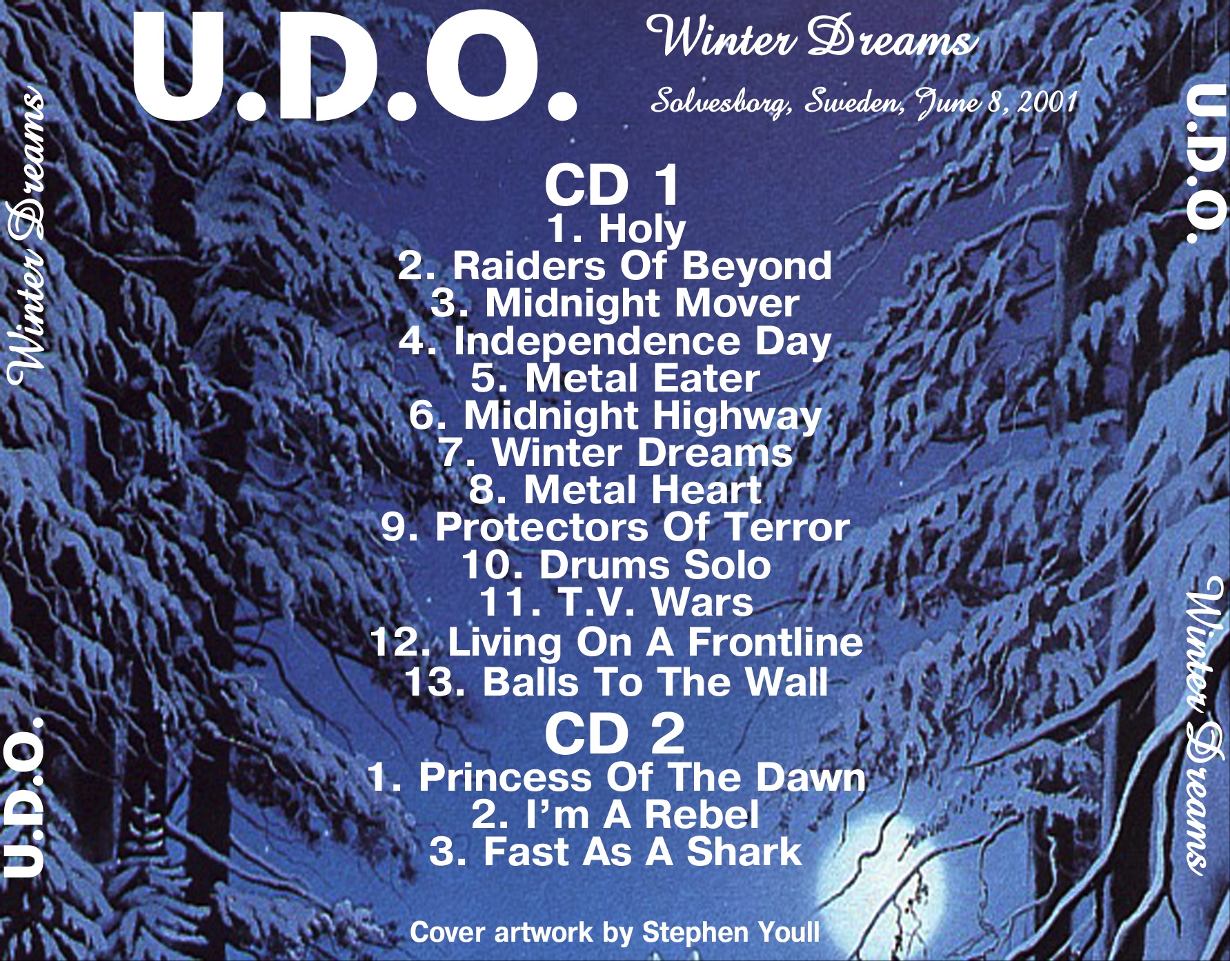 1. Holy 2. Raiders of Beyond 3. Midnight Mover 4. Independence Day 5. Metal Eater 6. Midnight Highway 7. Winter Dreams 8. Metal Heart 9. Protectors of Terror 10. Drums Solo 11. T.V. Wars 12. Living on a Frontline 13. Balls to the Wall