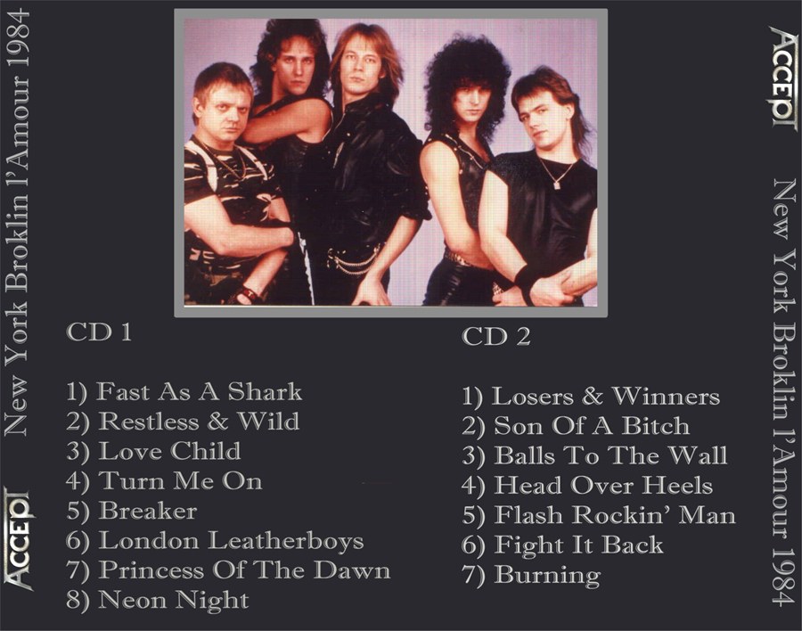 1. Intro 2. Fast as a Shark 3. Restless and Wild 4. Love Child 5. Turn Me On 6. Breaker 7. London Leatherboys 8. Princess of the Dawn 9. Guitar Solo 10. Neon Nights