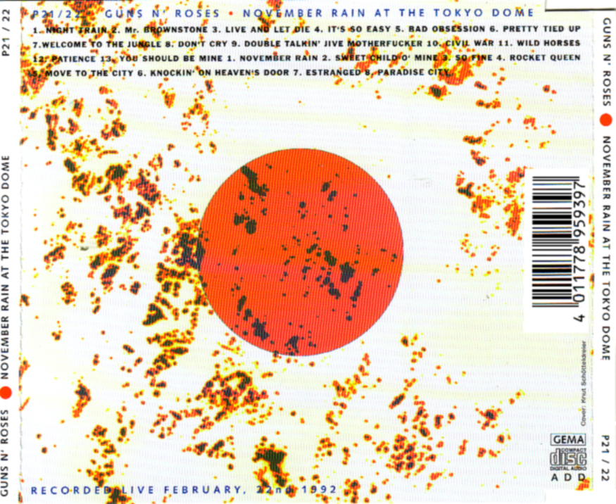 1. Night Train 2. Mr. Brownstone 3. Live and Let Die 4. It's So Easy 5. Bad Obsession 6. Pretty Tied Up 7. Welcome to the Jungle 8. Don't Cry 9. Double Talkin' Jive Motherfucker 10. Civil War 11. Wild Horses 12. Patience 13. You Could Be Mine