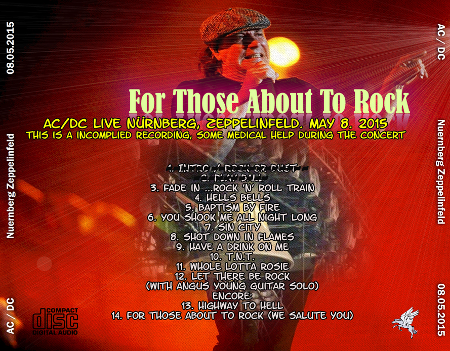 Intro Play Ball 1. Rock 'n' Roll Train 2. Hells Bells 3. Baptism by Fire 4. You Shook Me All Night Long 5. Sin City 6. Shot Down in Flames 7. Have a Drink on Me 8. T.N.T. 9. Whole Lotta Rosie 10. Let There Be Rock (with Angus Young guitar solo… more ) 11. Highway to Hell (with Angus Young guitar solo intro) 12. For Those About to Rock (We Salute You)