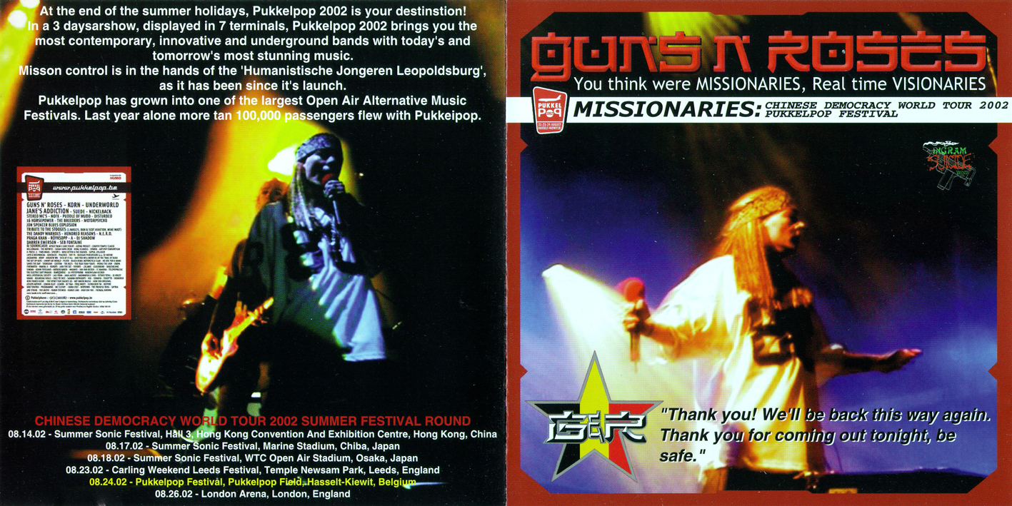 1. Introduction 2. Welcome to the Jungle 3. It's So Easy 4. Mr. Brownstone 5. Live and Let Die 6. Think About You 7. You Could Be Mine 8. Sweet Child O' Mine 9. Knockin' on Heaven's Door 10. Out Ta Get Me 11. Madagascar 12. Rhiad and the Bedouins 13. Guitar Solo [Buckethead] 14. Chinese Democracy