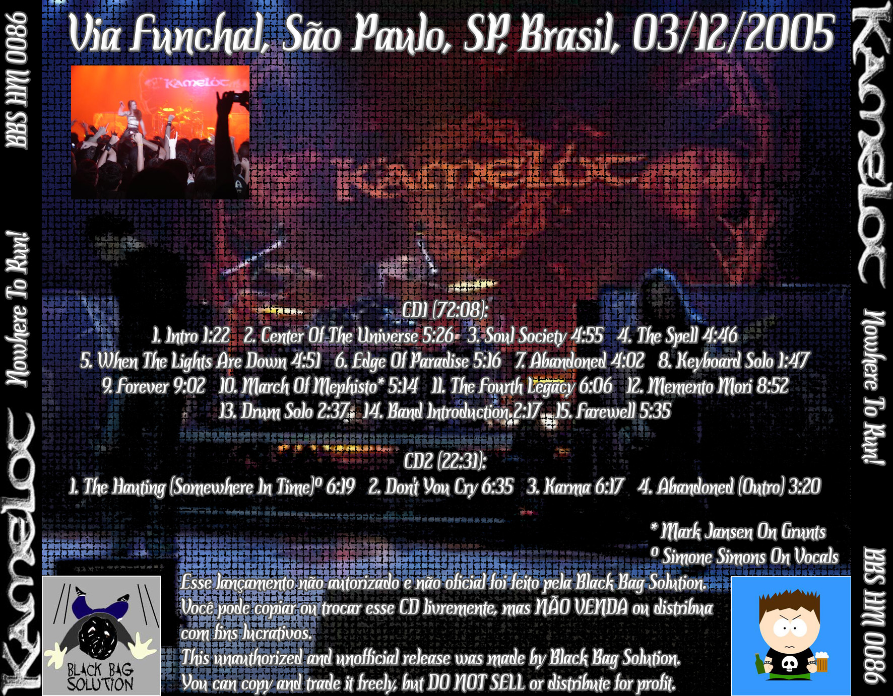 1. Intro 2. Center of the Universe 3. Soul Society 4. The Spell 5. When the Lights Are Down 6. Edge of Paradise 7. Abandoned 8. Keyboard Solo 9. Forever 10. March of Mephisto 11. The Fourth Legacy 12. Memento Mori 13. Drum Solo 14. Band Introduction 15. Farewell