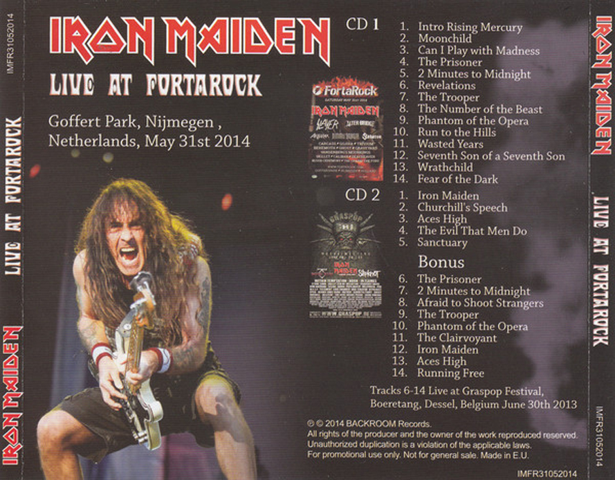 1. Intro / Rising Mercury 2. Moonchild 3. Can I Play with Madness 4. The Prisoner 5. 2 Minutes to Midnight 6. Revelations 7. The Trooper 7. The Number of the Beast 9. Phantom of the Opera 10. Run to the Hills 11. Wasted Years 12. Seventh Son of a Seventh Son 13. Wrathchild 14. Fear of the Dark