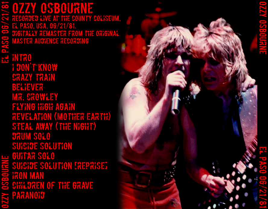 1. Intro 2. I Don't Know 3. Crazy Train 4. Believer 5. Mr. Crowley 6. Flying High Again 7. Revelation (Mother Earth) 8. Steal Away (The Night) 9. Drum Solo 10. Suicide Solution 11. Guitar Solo 12. Suicide Solution (Reprise) 13. Iron Man 14. Children of the Grave 15. Paranoid