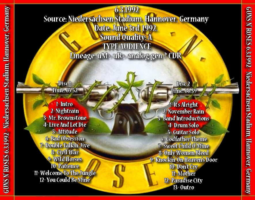 1. Intro 2. Nightrain 3. Mr. Brownstone 4. Live And Let Die 5. Attitude 6. Bad Obsession 7. Double Talkin' Jive 8. Civil War 9. Wild Horses 10. Patience 11. Welcome To The Jungle 12. You Could Be Mine