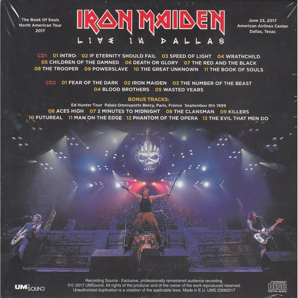 6. Aces High 7. 2 Minutes to Midnight 8. The Clansman 9. Killers 10. Futureal 11. Man on the Edge 12. Phantom of the Opera 13. The Evil That Men Do